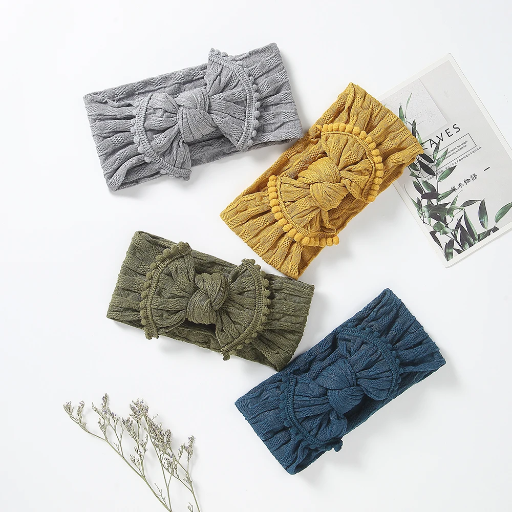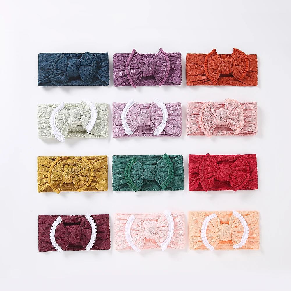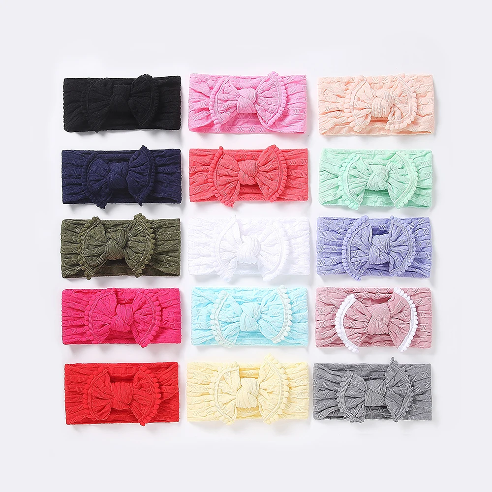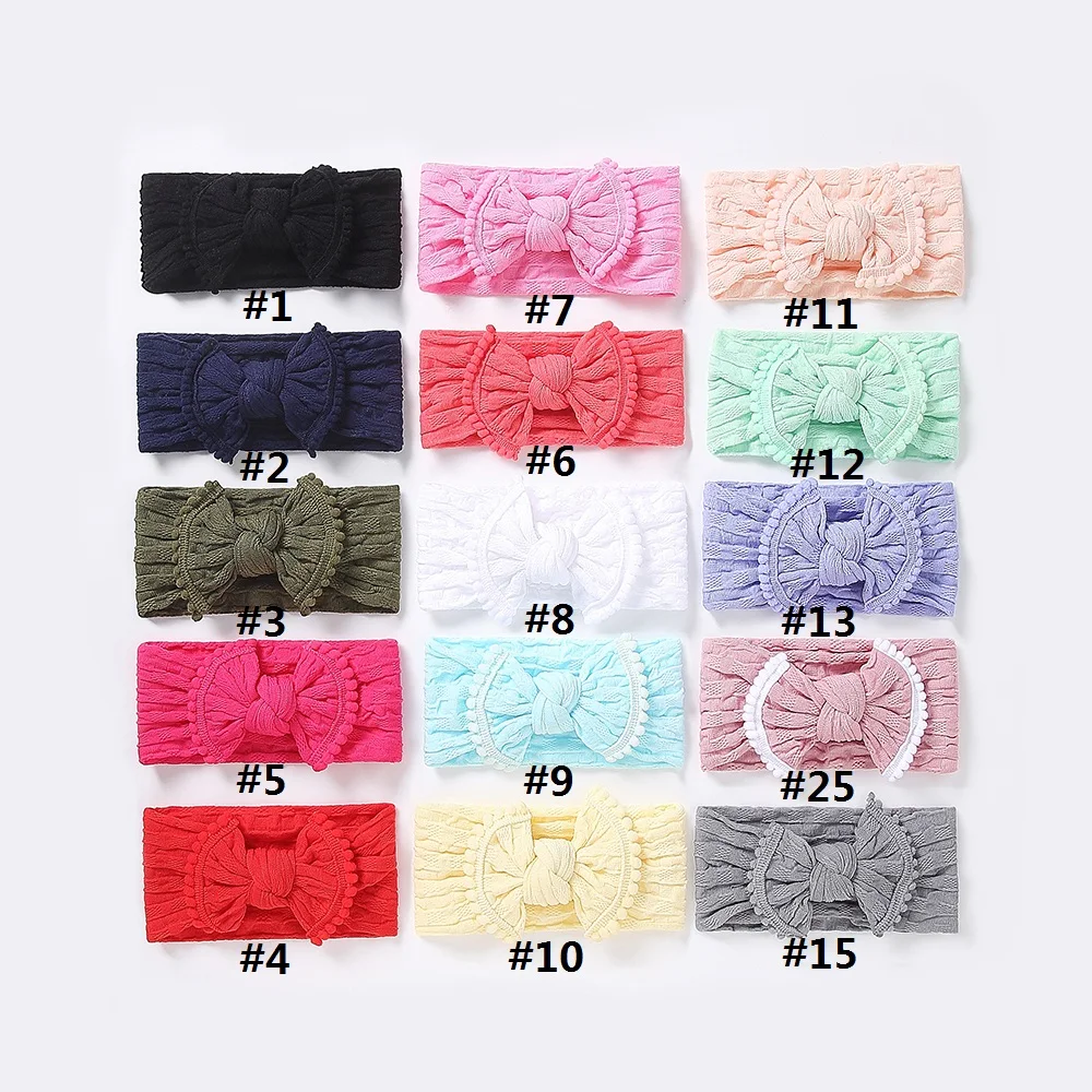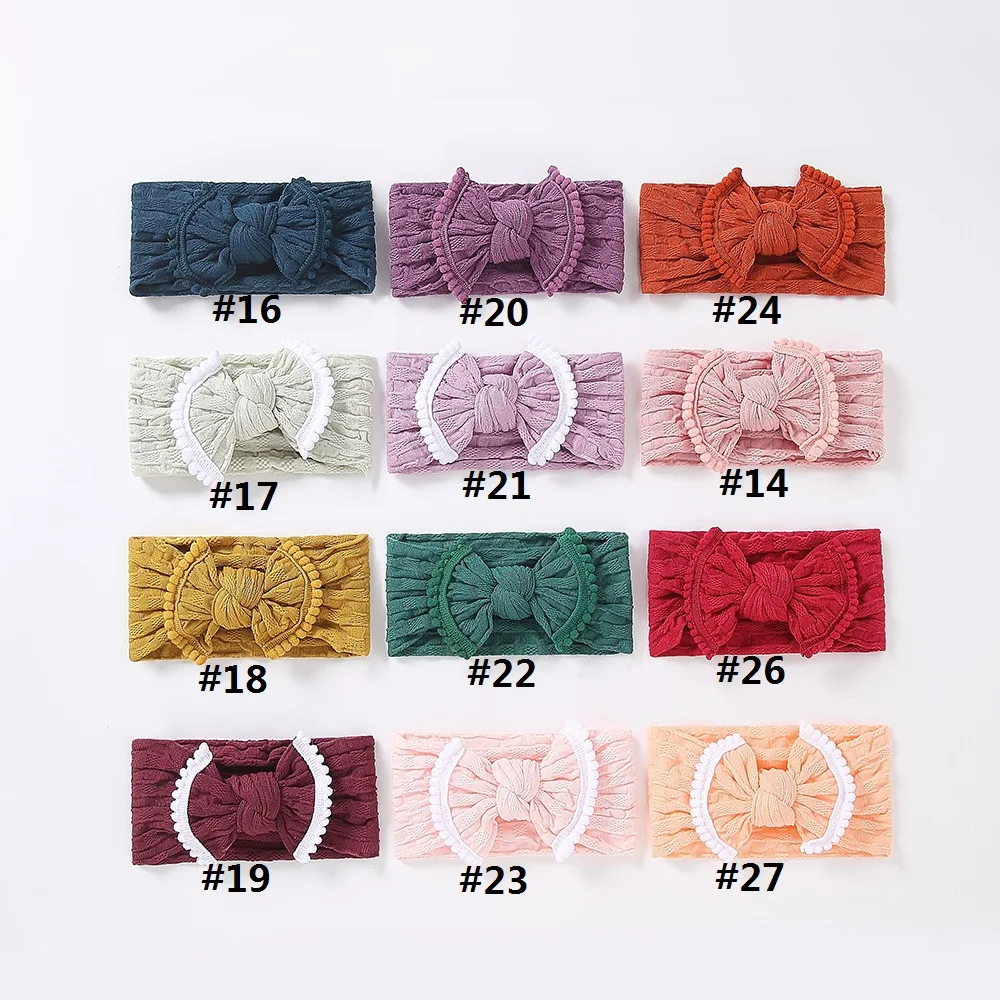 Повязка на голову Детская в рубчик, 27 шт.лот, широкая нейлоновая повязка на голову, вязаная повязка на голову, вафельный вязаный узел, тюрбан бант из нейлона