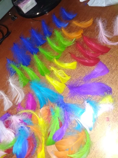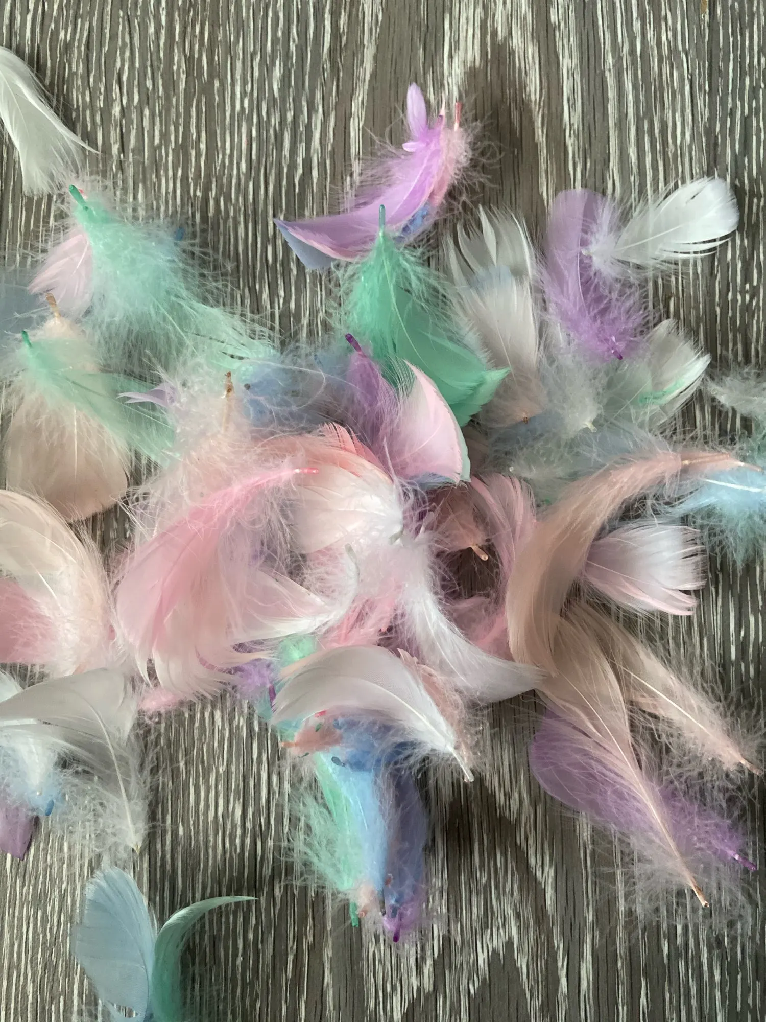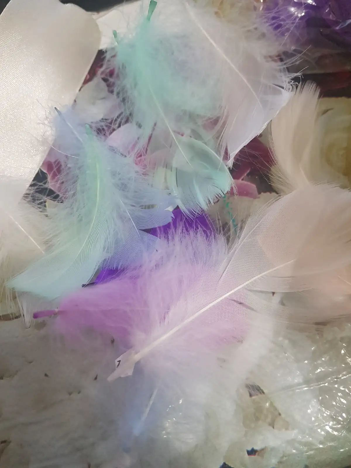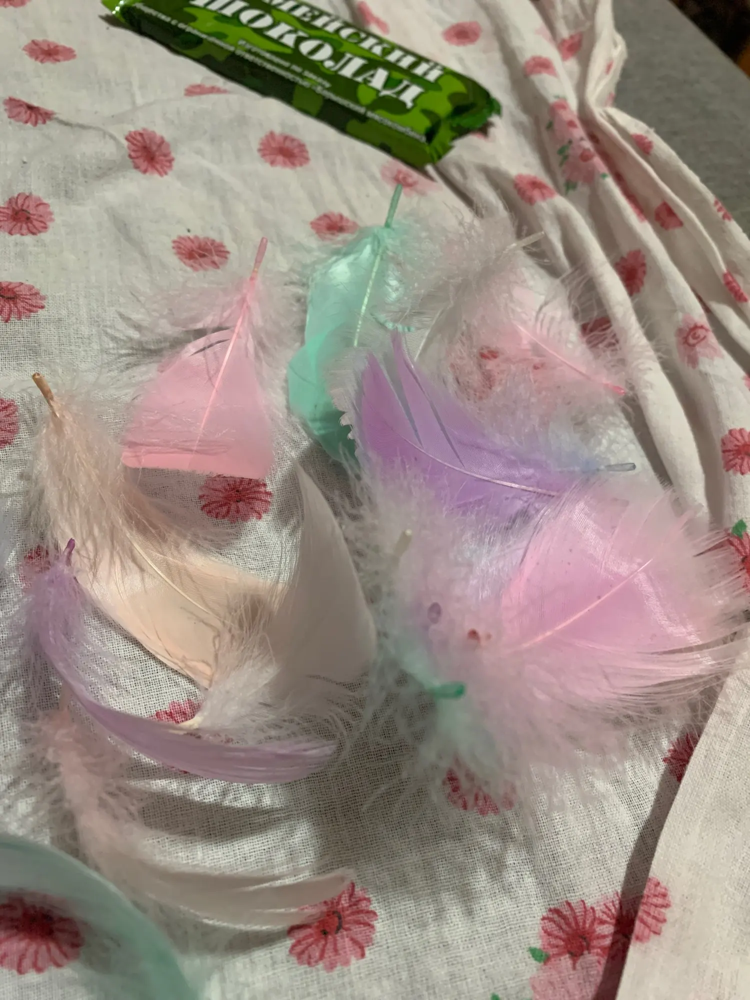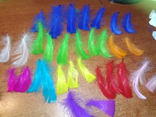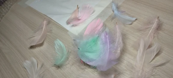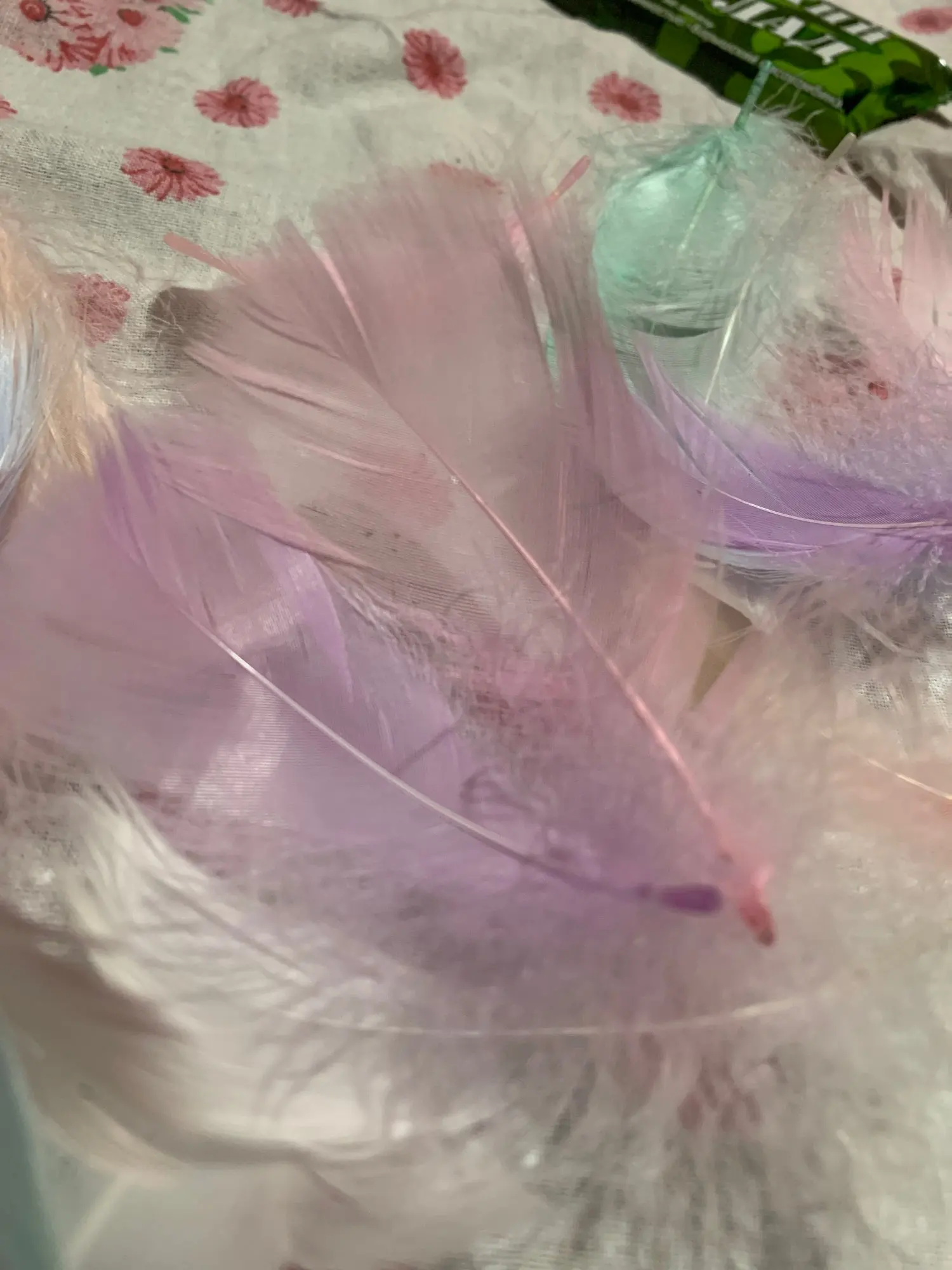 Красивые нежные тона)) Не считала количество. Попозже дополню. Продавцу не писала. Пришли пёрышки относительно быстро. Спасибо продавцу)) Рекомендую.