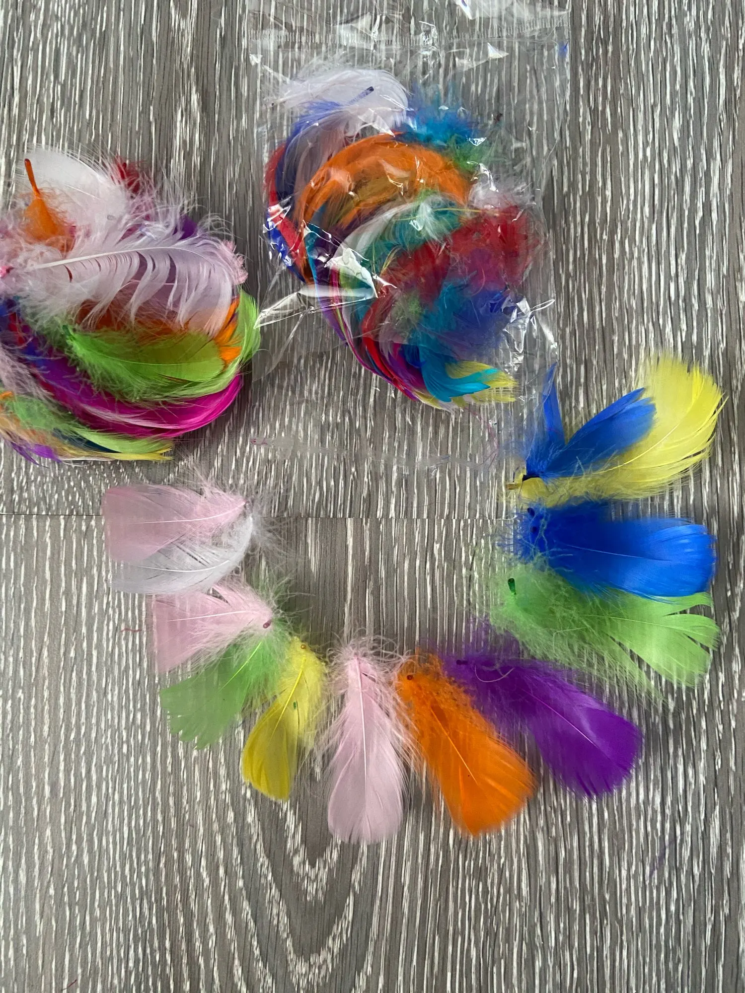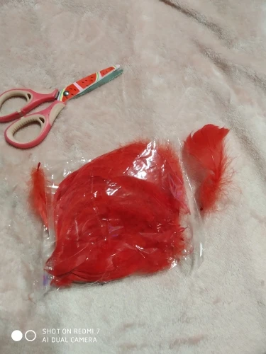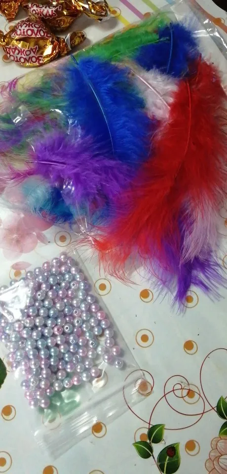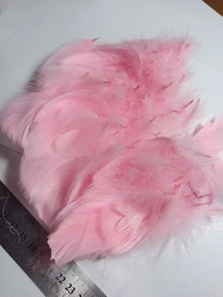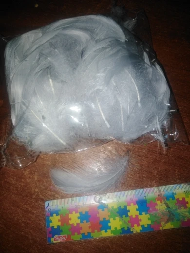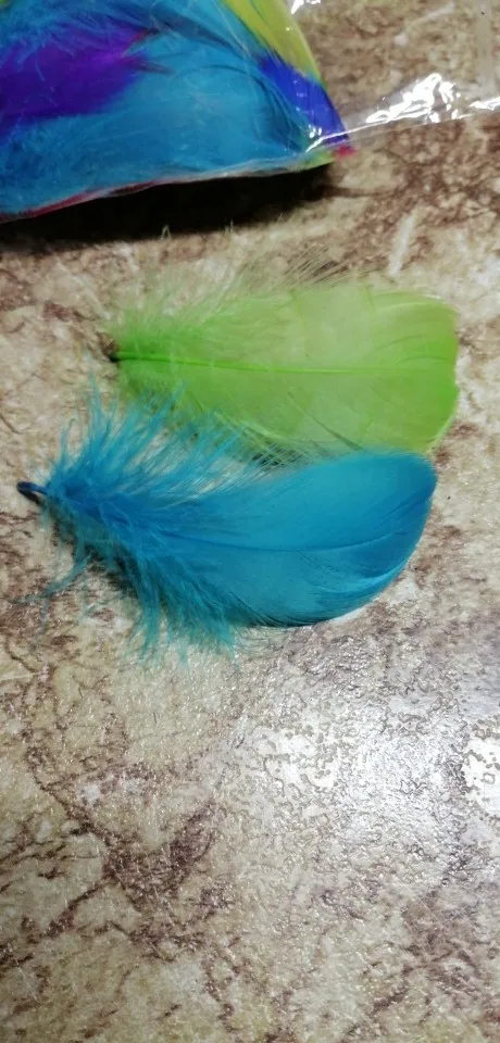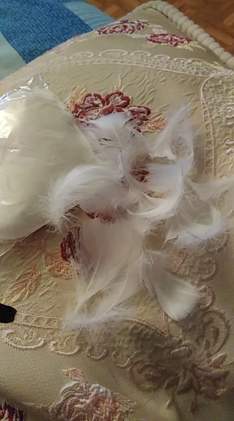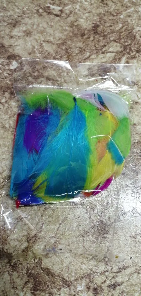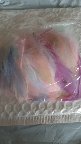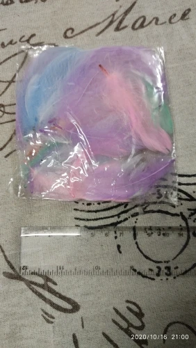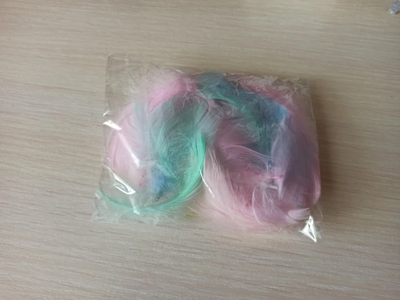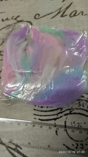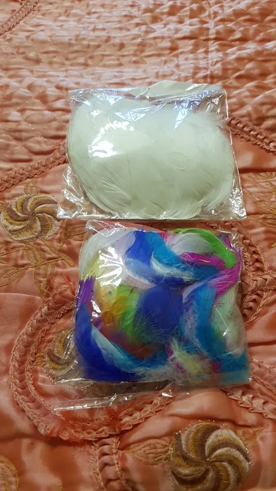Доставка быстрая - 10 дней. Описанию соответствуют, пришли в пакетиках размером приблизительно 10х10 см. Количество не пересчитывала, т.к. от перьев немного летит пух и не хочется лишний раз без необходимости открывать пакетики. В целом покупкой довольна.
