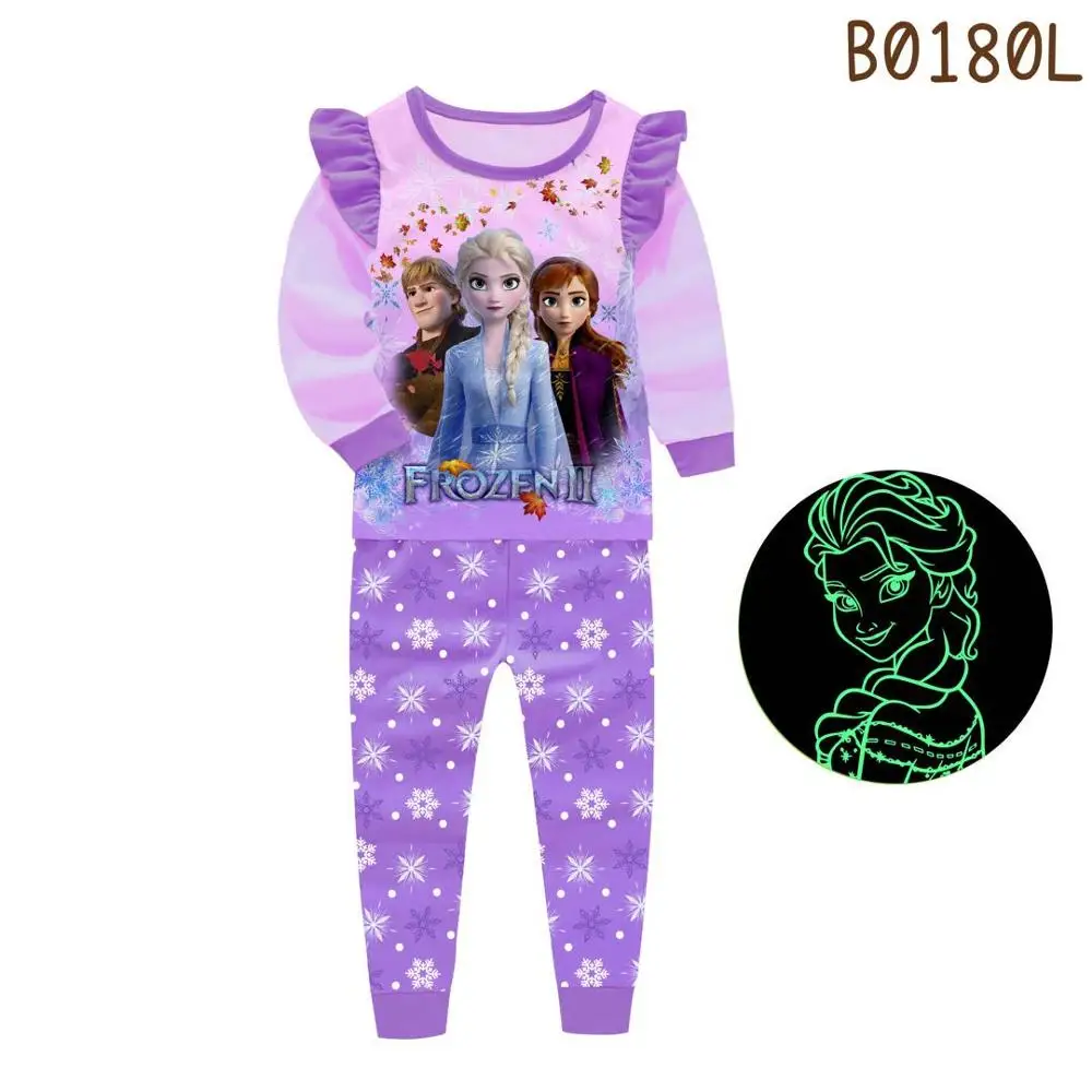 Пижама детская светящаяся в темноте, Эльза и Анна, мультяшная Пижама, одежда для сна для девочек, одежда для детей, с изображением животных, рога, единорога