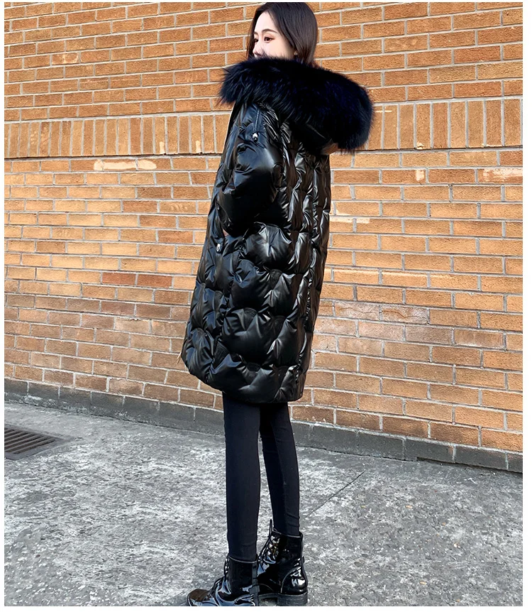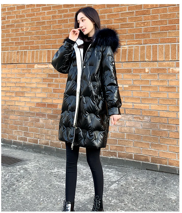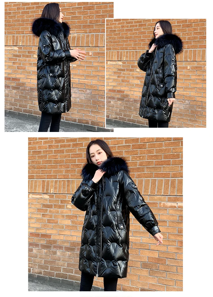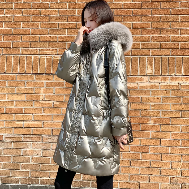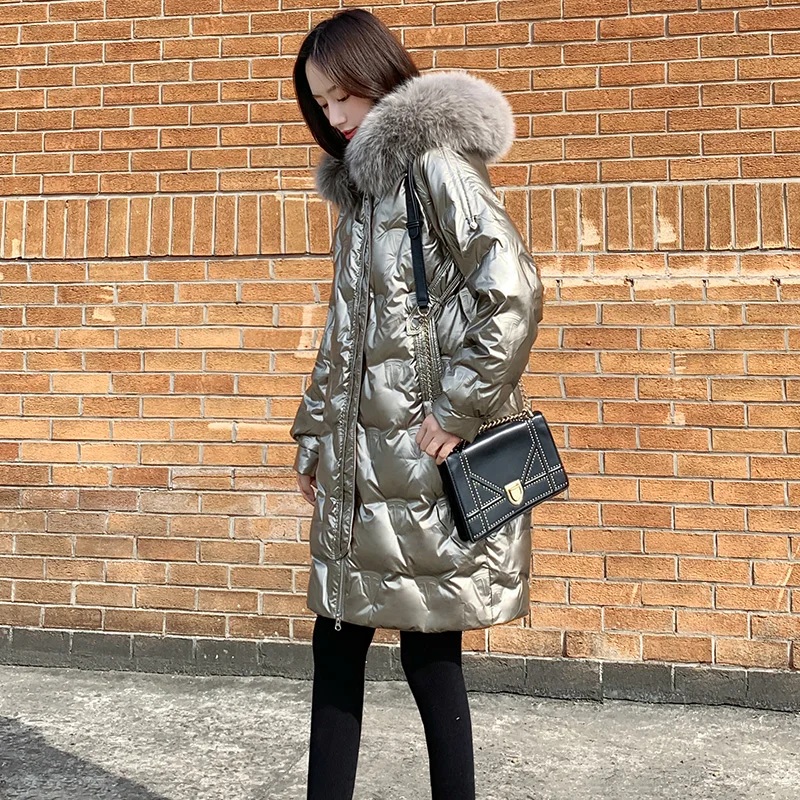 Парка женская зимняя, с меховым воротником, золотистого цвета, F857