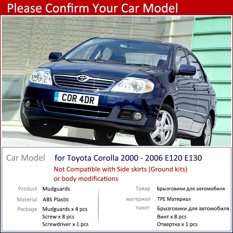 Брызговики для автомобилей Toyota Corolla E120 E130 2000 2006, брызговики для передних и задних брызговиков, брызговики 2001 2002 2003 2004 2005