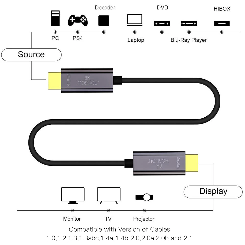 8K волоконно-оптический HD 2,1 кабель ARC HDR 4K 120Hz MOSHOU мультимедийный видео кабель высокой четкости для PS4 Apple TV усилитель