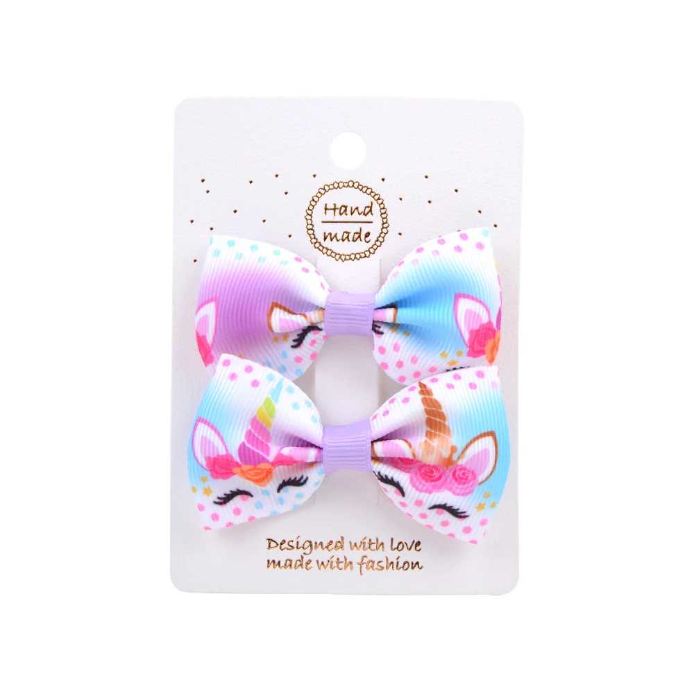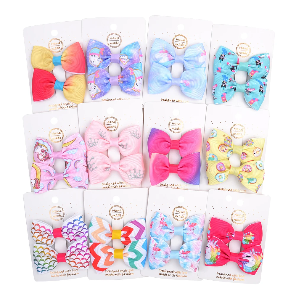 Милые цветные банты для волос с принтом единорога короны звезды с зажимом для детей девочек бутик заколки для волос аксессуары для волос