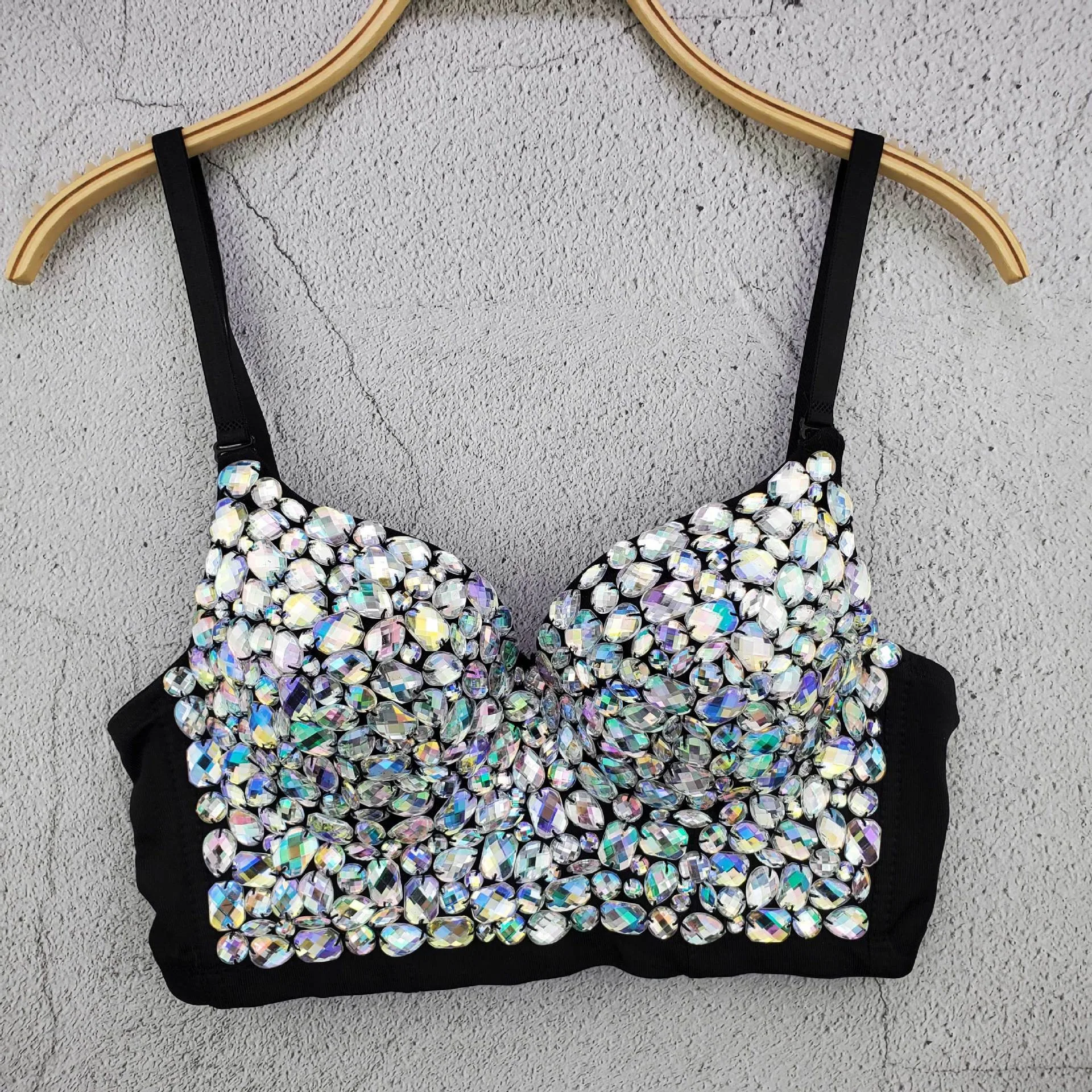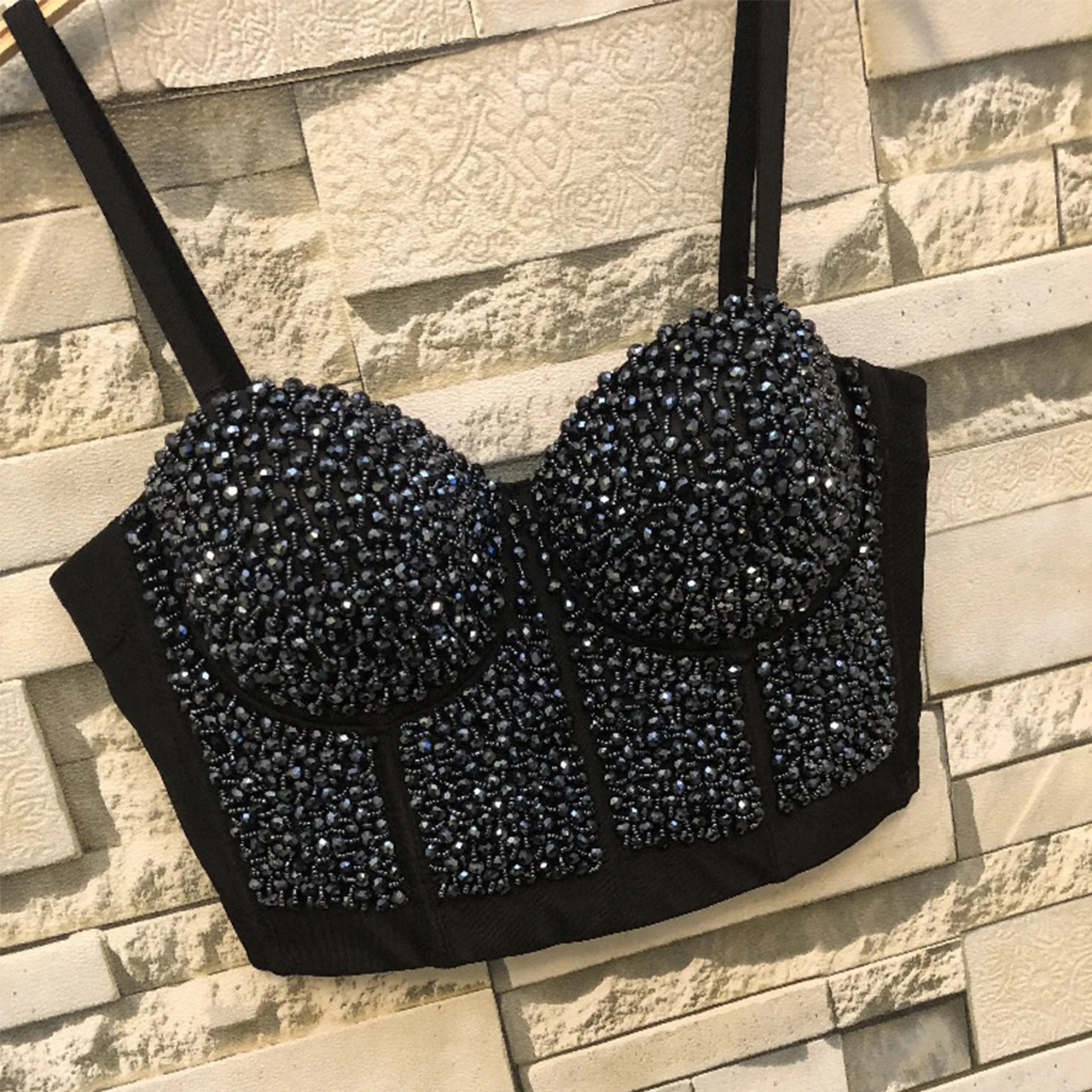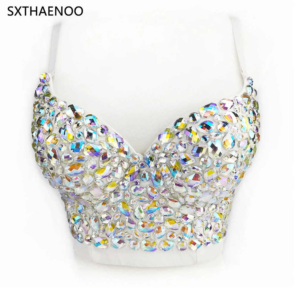 Блестящий укороченный топ SXTHAENOO, стразы, с открытой спиной, сексуальный бюстгальтер для вечерние, клубный Топ