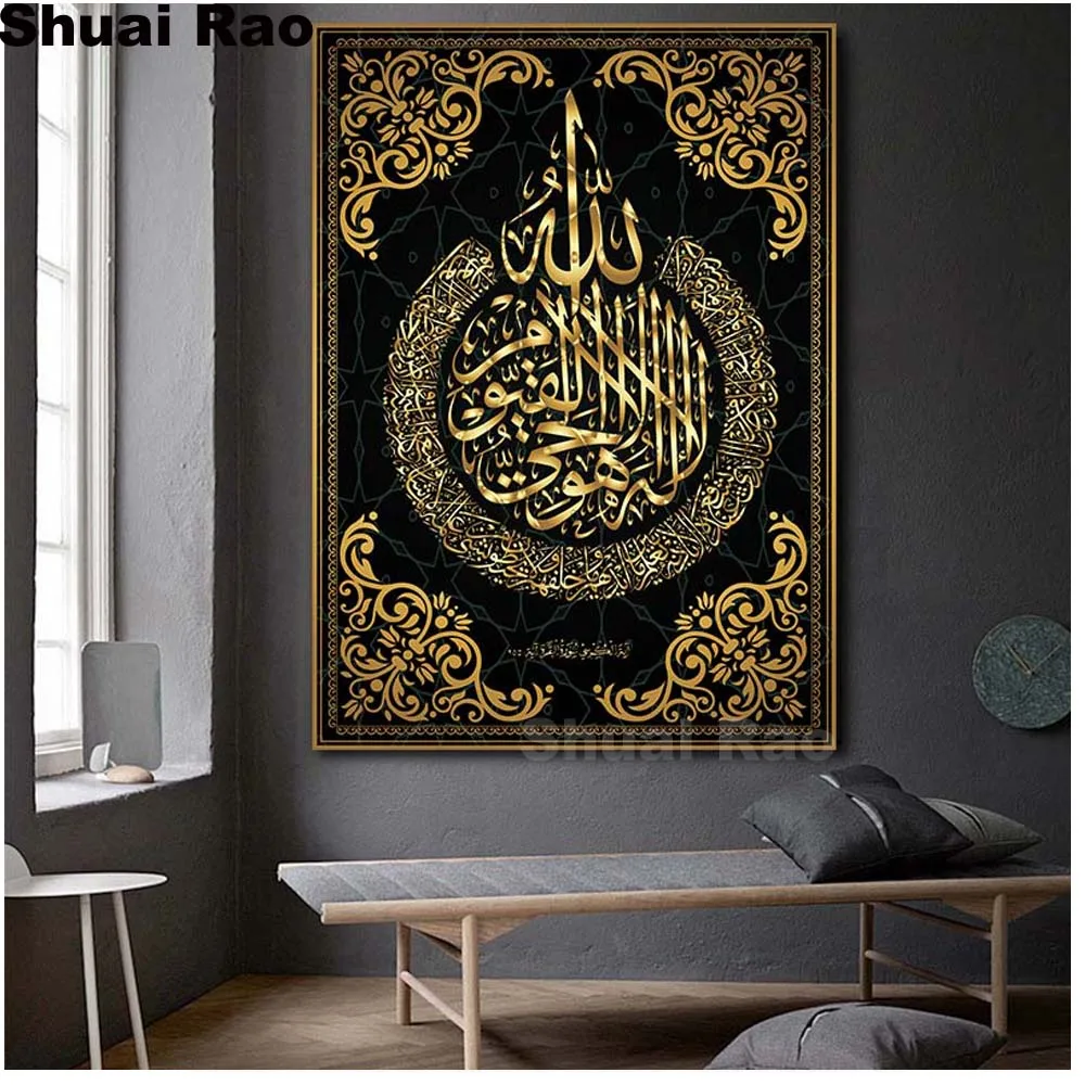 Аллах мусульманство ислам каллиграфия, алмазная живопись, золотые гобелены, мечеть Рамадан, декоративная мозаика, алмазная вышивка, настенное искусство