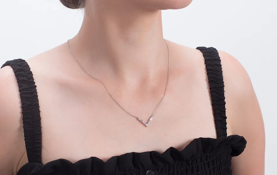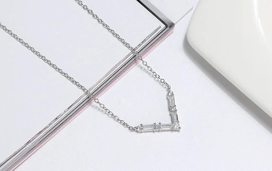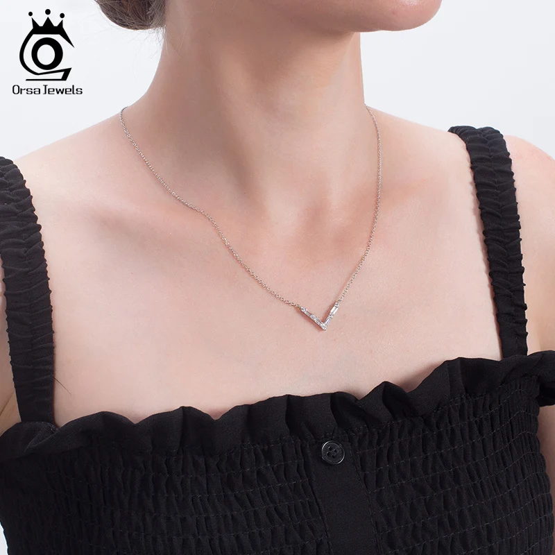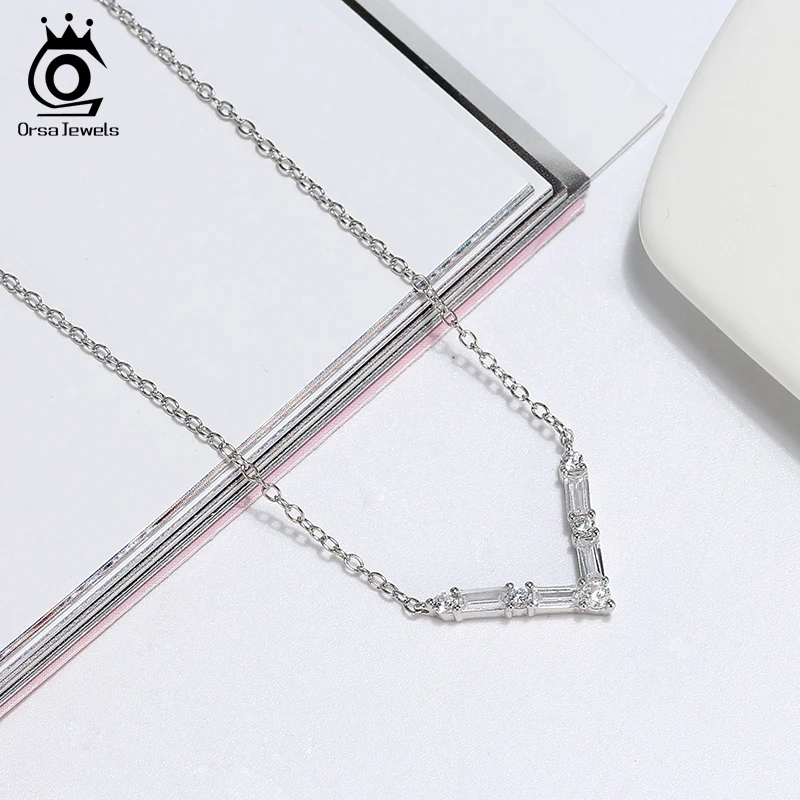 ORSA JEWELS, циркониевое ожерелье с подвеской для женщин, белый V образный кулон, Настоящее серебро 925 пробы, ожерелье, модное ювелирное изделие SN208