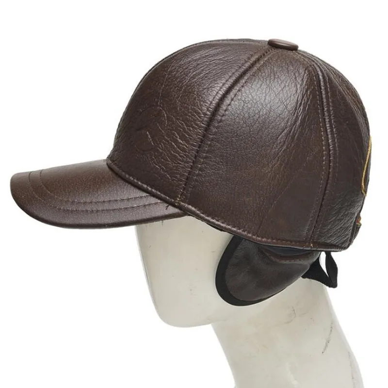 Зимняя шапка с наушниками, мужские береты из воловьей кожи, шапка и...