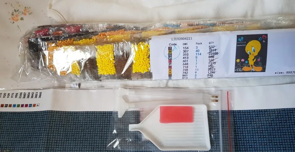 Элементы включают в себя:Сверло, холст, лоток, алмазная ручка, клей, бумага А4, коробка/бумажная посылка