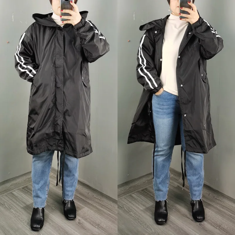 Женская одежда, тренчкоты, свободная верхняя одежда с капюшоном на завязках и асимметричной длиной на весну и осень