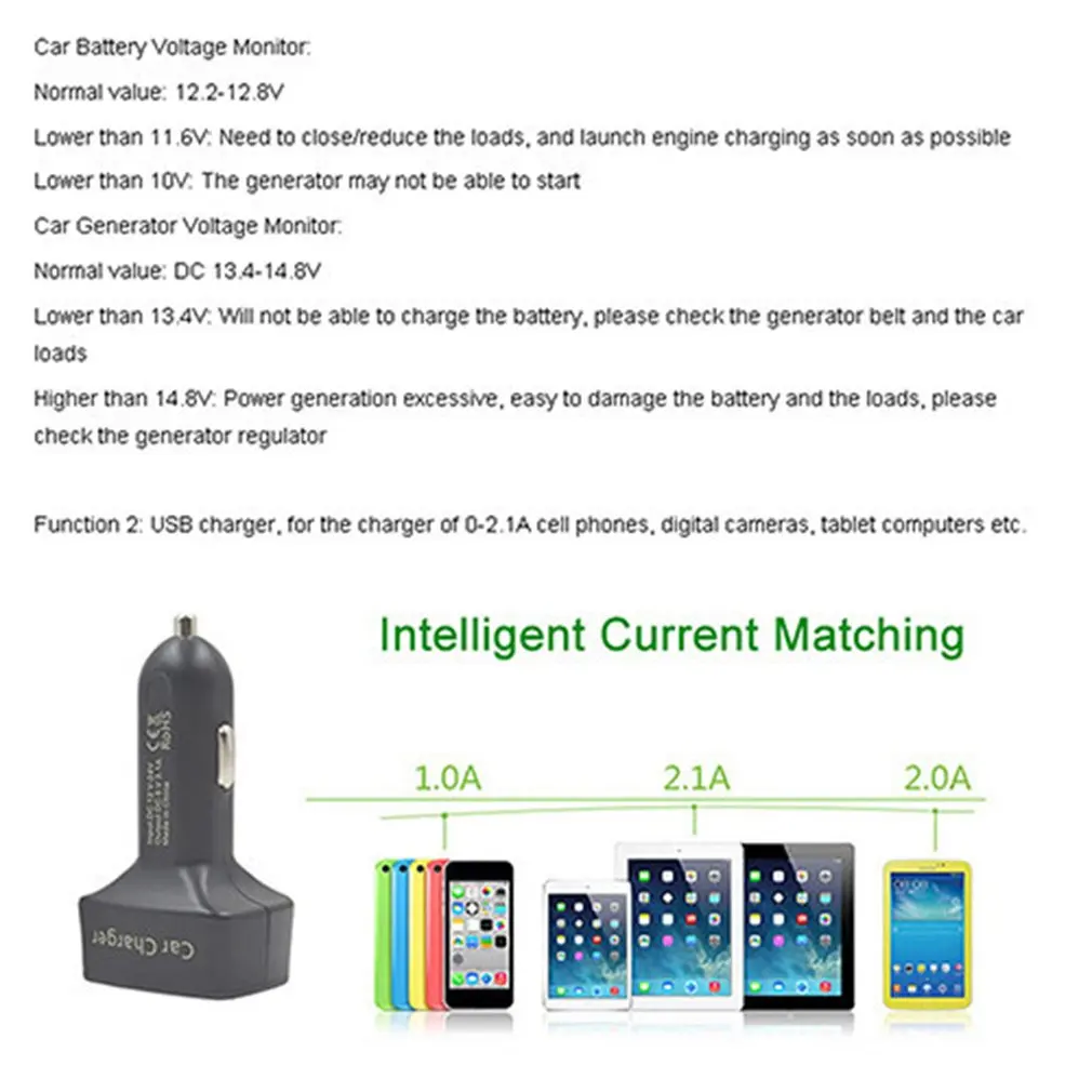 Номер моделиCar Charger Dual USB With Voltage/temperature/Current Meter Tester Dig