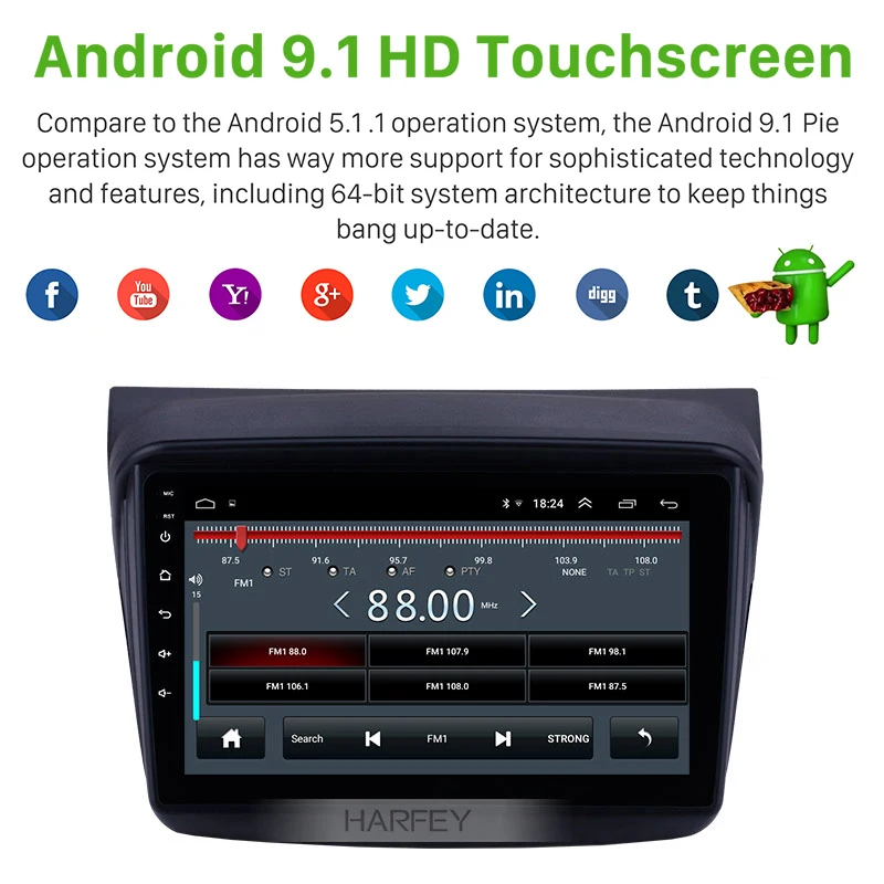 Harfey HD сенсорный экран 9 дюймов Android 9,1 Автомобильный GPS радиоДля MITSUBISHI PAJERO Sport/L200/2006 + Triton/2008 + PAJERO 2010Поддержка Bluetooth Carplay SWC