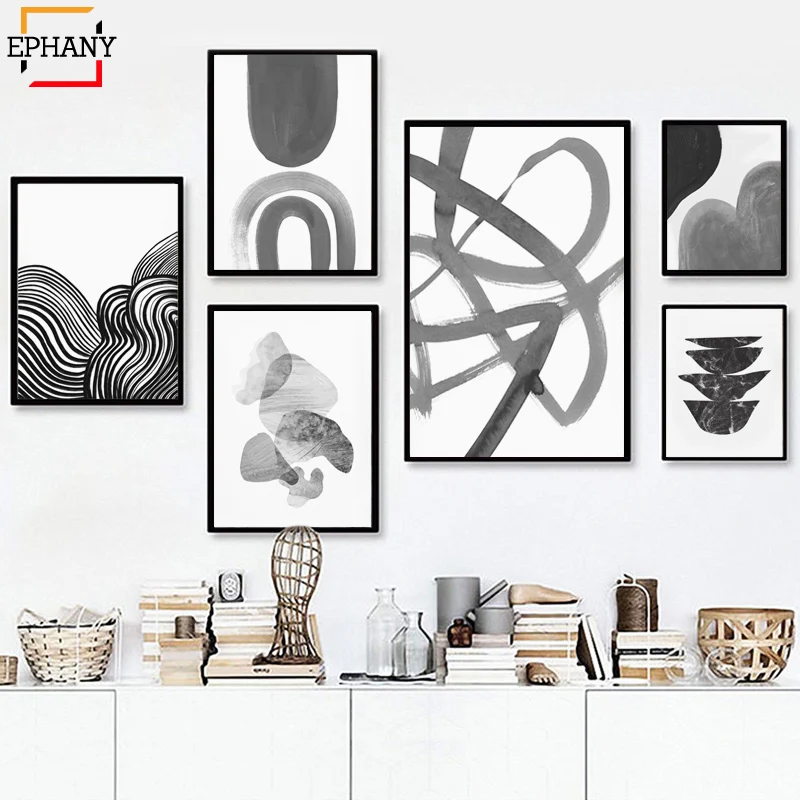 Картина на холсте, настенная живопись, скандинавский плакат, черно-...