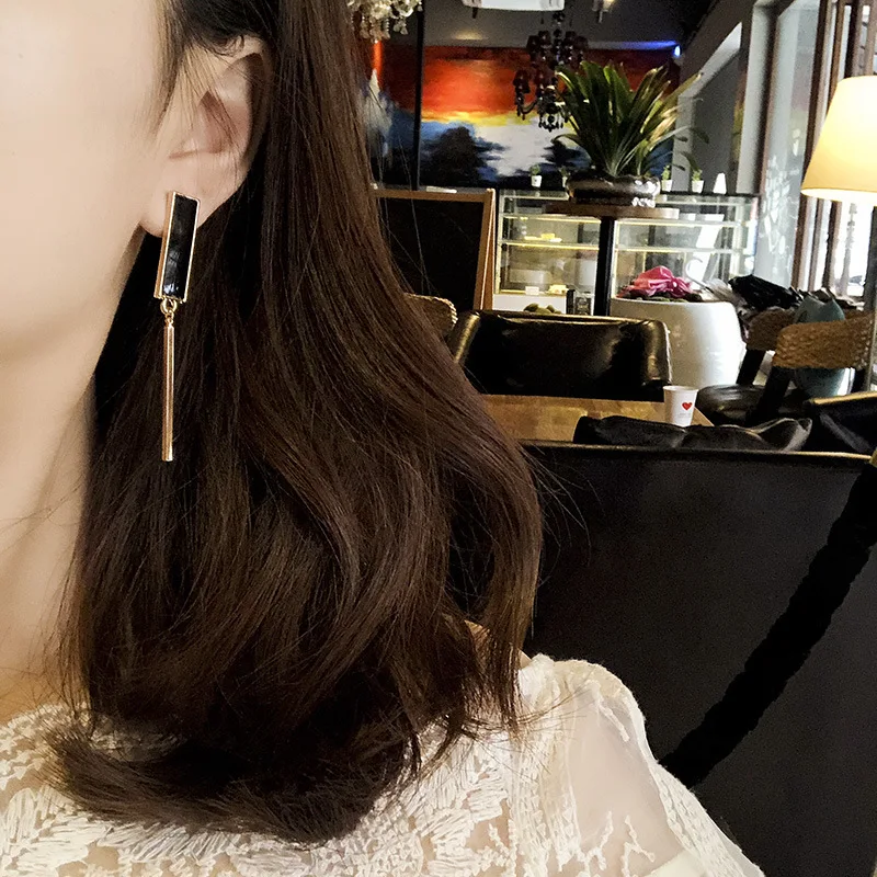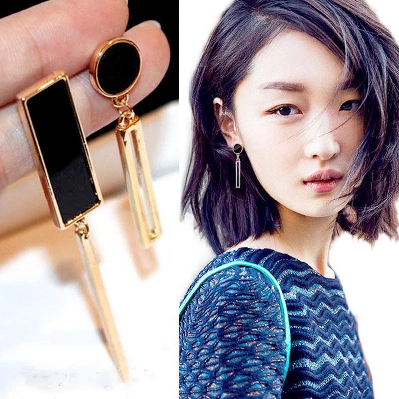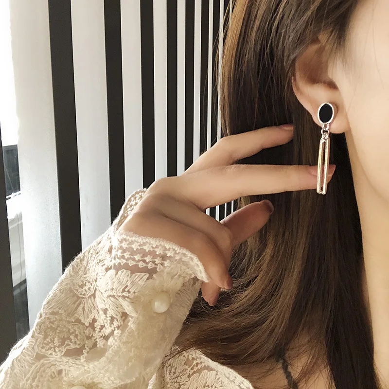 Женские серьги-подвески, из черного золота, круглые, квадратные, металлические, массивные, ювелирные изделия, 2020