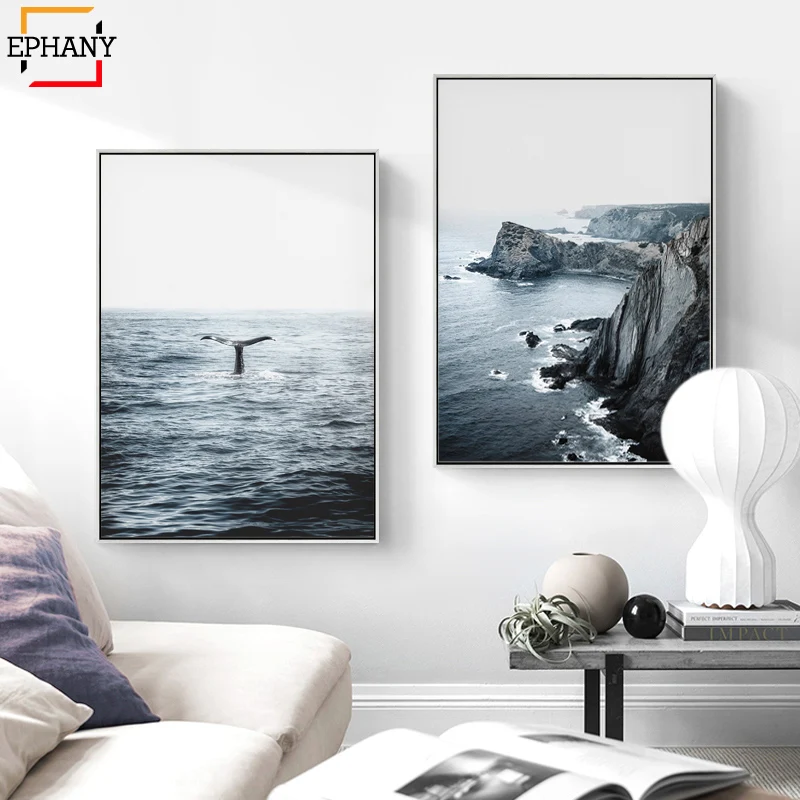 Постер с океанским пейзажем на холсте, скандинавский стиль, пляж, Кит, настенная живопись, декоративная картина, скандинавский Декор для дома