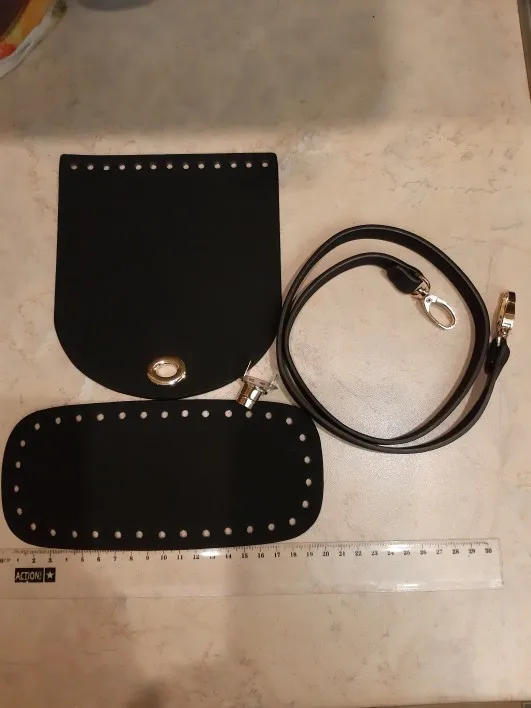 Пришло быстро. Упаковано качественно. Одно непонятно ремешок очень маленький, для ручек слишком длинный, для ремешка через плечо должен быть не менее 100 см. Бесполезная деталь в данном комплекте.
