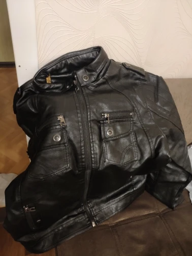 Куртка мужская зимняя из искусственной кожи, ветрозащитная, в мотоц...