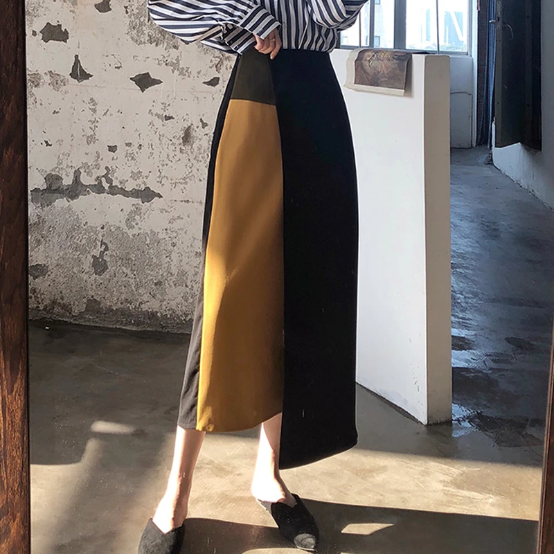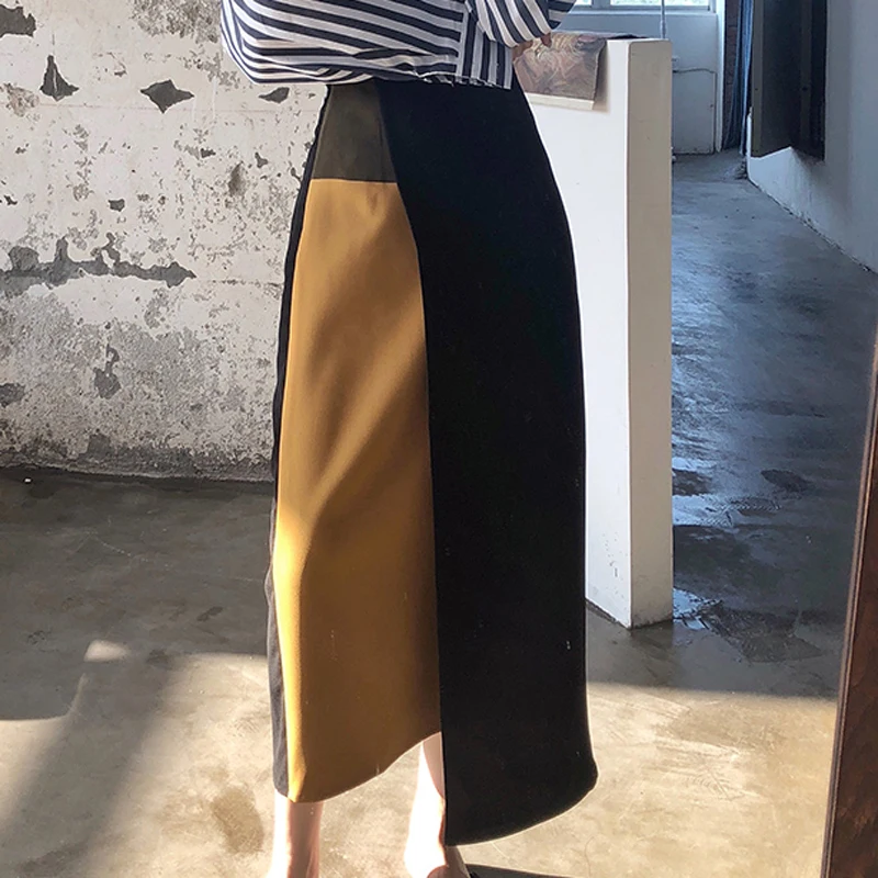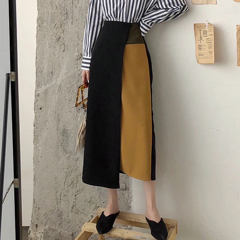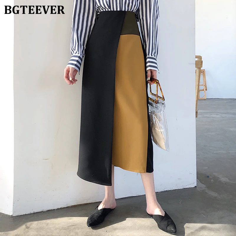 Юбка-миди BGTEEVER, с высокой талией, с асимметричным подолом, в стиле пэчворк, на весну, 2020