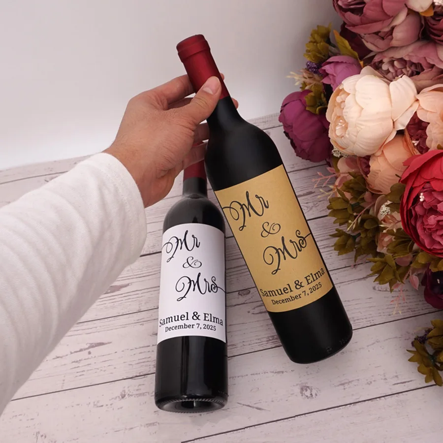 20 шт. индивидуальное имя пары мистер и миссис индивидуальная вечеринка, душ для невесты, свадебные винные этикетки цвета шампанского наклейки обертка для бутылок