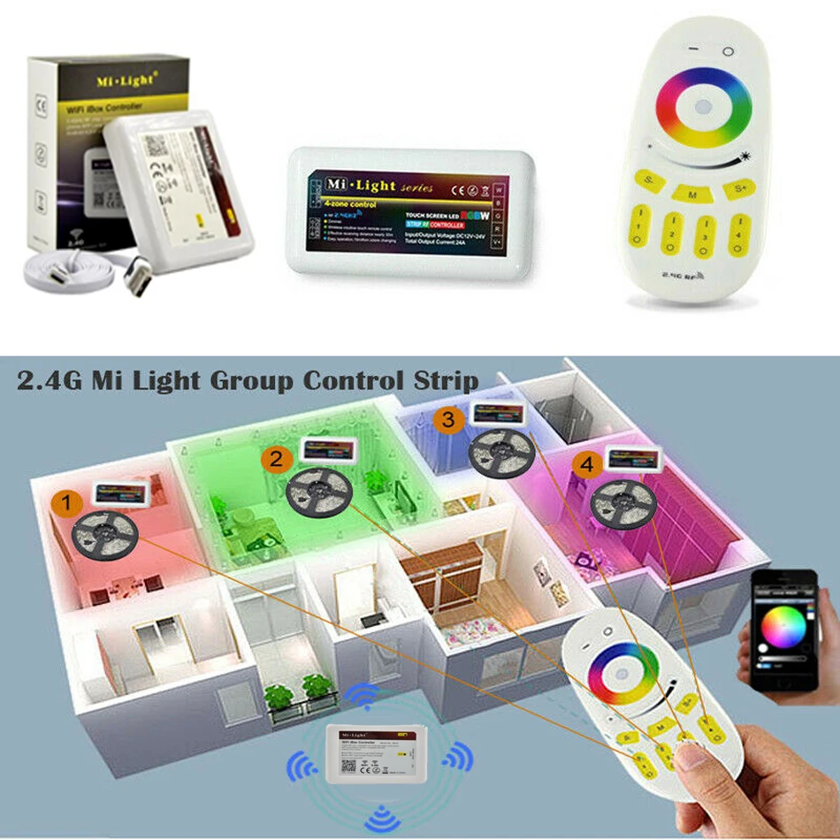 5 м 10 м 20 м 30 м 40 м 5050 RGB RGBW 60 светодиодовм Светодиодная лента + 4-зонный RGB RGBW Пульт дистанционного управления с WiFi WL IBOX + светодиодный Светодиодный источник питания