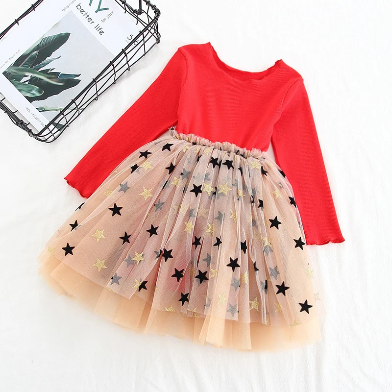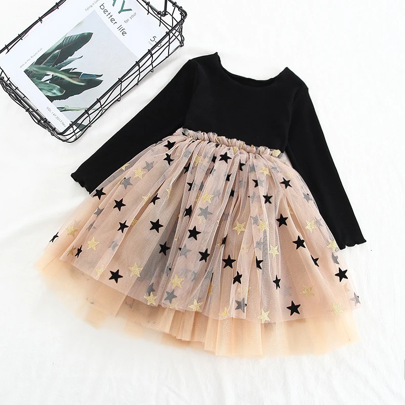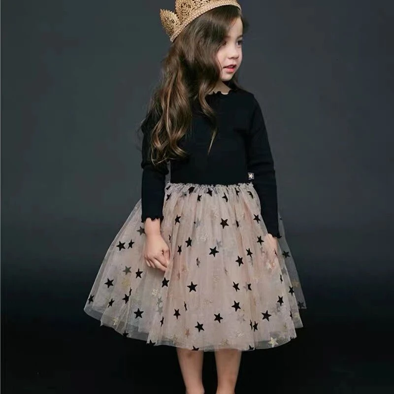 2020, одежда для девочек, платье, модная юбка принцессы, вечернее платье с длинным рукавом, Весенняя блестящая детская одежда с пятиконечными звездами