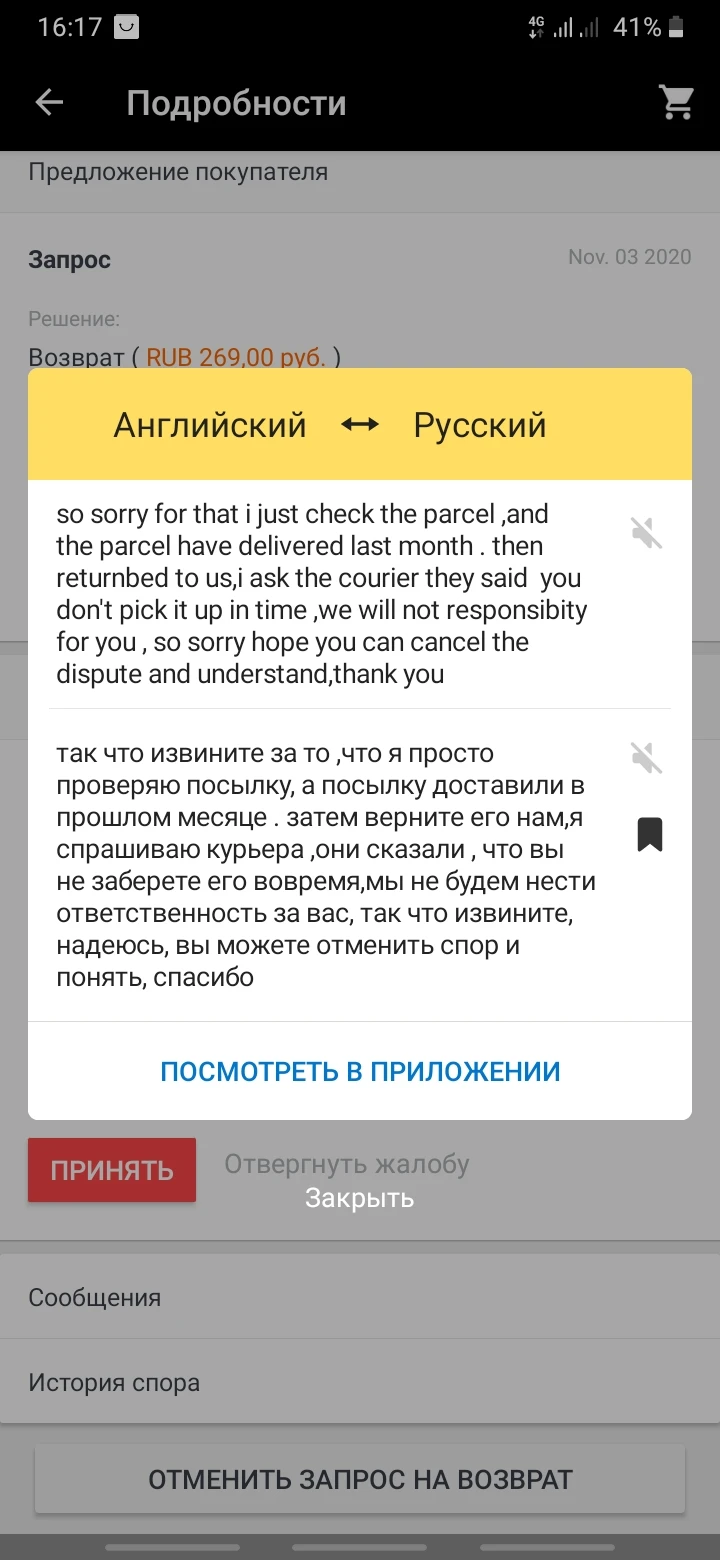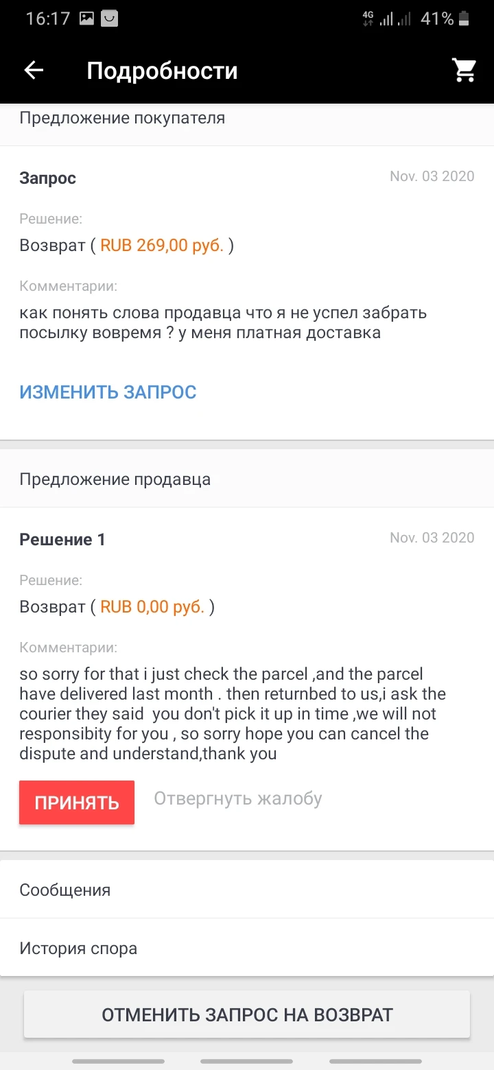 заказ не пришел, средства вернули