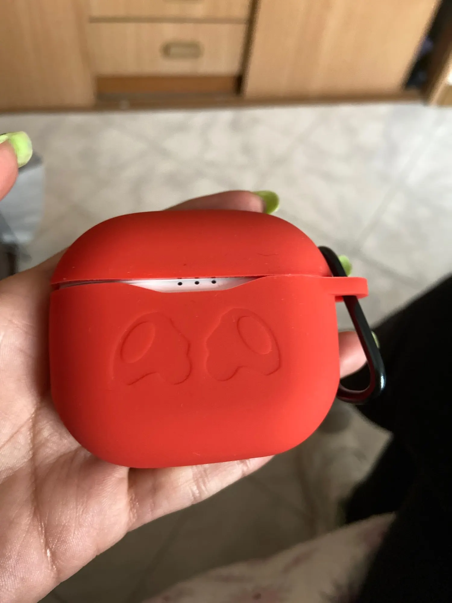 Ну что я могу сказать о данном товаре. За свои деньги нормалды, но: 1) Чехол плохо держится на крышке кейса и если раньше лёгким движением открывался кейс, то сейчас же скидывается чехол с крышки 2) хер откроешь заглушку для зарядки, особенно если подстричь ногти. Как обстоят дела у людей с ногтям хз. Мб у них такая же проблема, ведь глубина составляет 3-4мм 3) Возможно срежу ухо для "карабина"(если его так можно назвать), ибо оно мне незачем 4) Пару слов о "карабине". Он сломался после первого использования. Думал деду подгоню для телефона и на петличку, а хер там