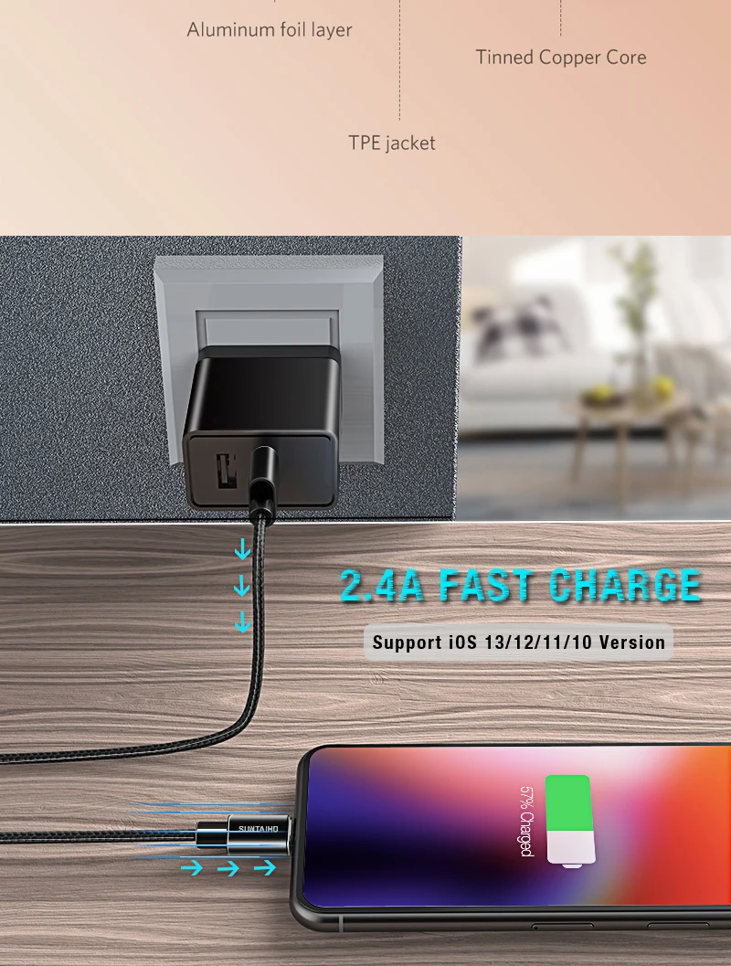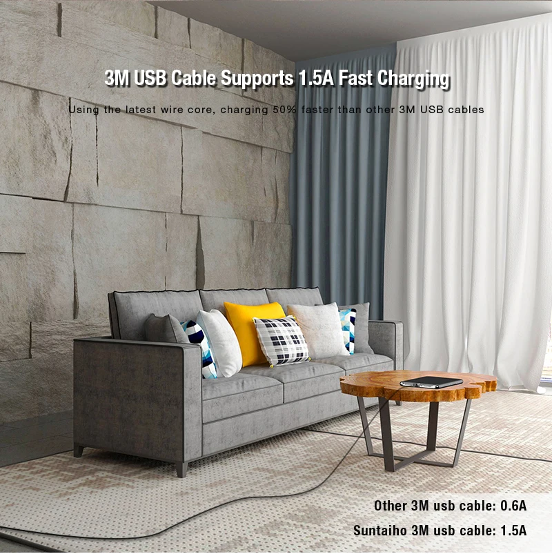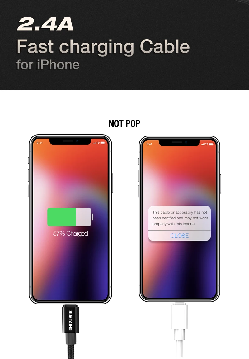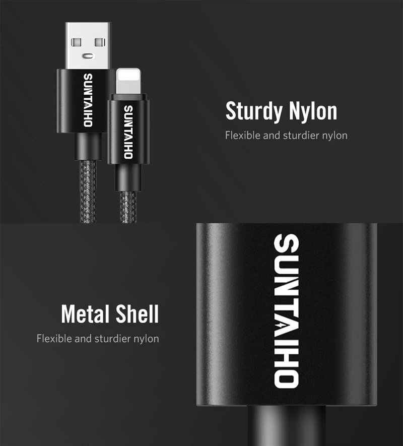 USB-кабель Suntaiho для iPhone, USB Type-A-Lightning, 2.4A, 0.2 м-3 м, цвета в ассортименте