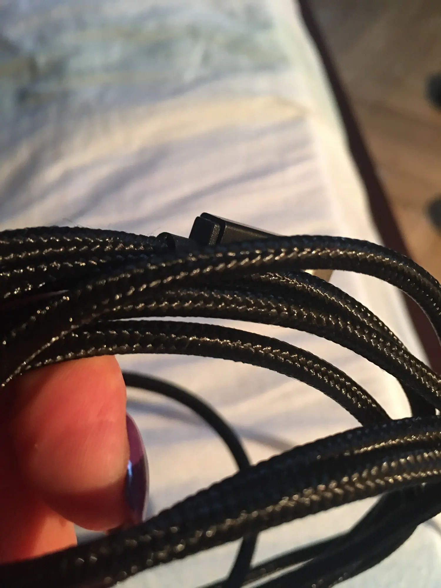 От шнура в мягкой оплётке ждёшь, что он будет мягонький, плоско лежать на столе/плавно болтаться из кармана или сумки. Но этот не таков! У этого кабеля мощный внутренний стержень! Как приехал свёрнутый, так спустя месяц всё стремиться принять форму свёртка!))))) Но работает исправно запасным уже месяц, тут претензий нет. Штекеры добротные.