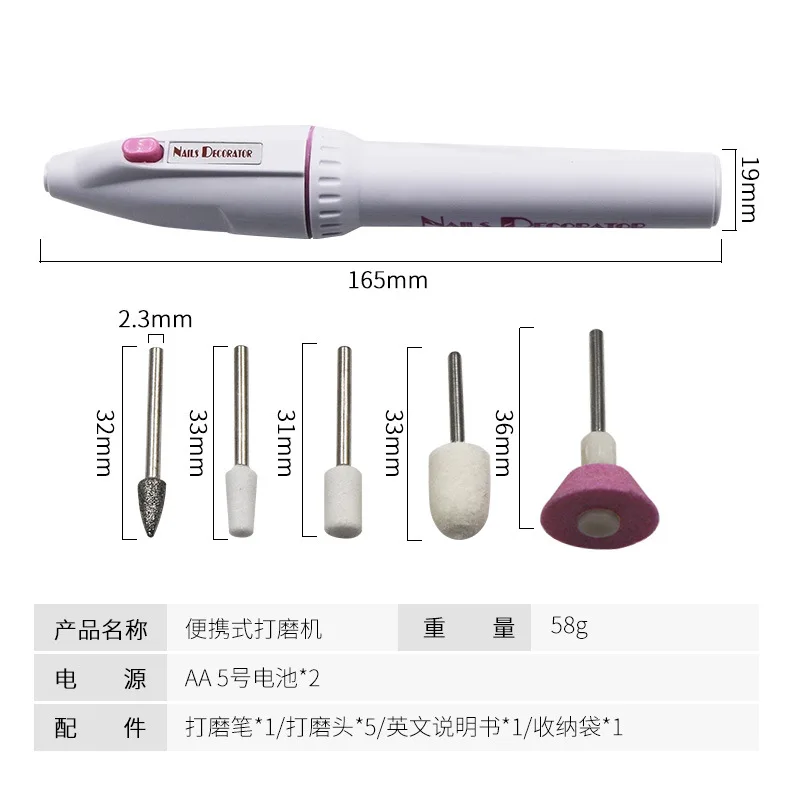 Электрический шлифовальный станок для дизайна ногтей, портативный мини-аппарат для маникюра ногтей, электрическая пилка для ногтей, Аккумуляторная дрель для ногтей, 2 батареи АА
