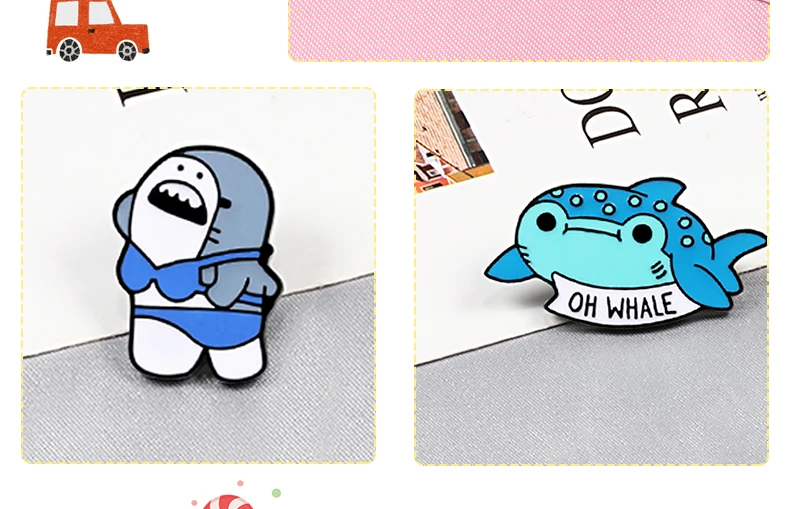 Эмалированная брошь для одежды, рюкзака, морские милашки, синие рыбки, Кит, дельфин, Акула, айсберг, брошка мультфильм, значок булавки на лацканы