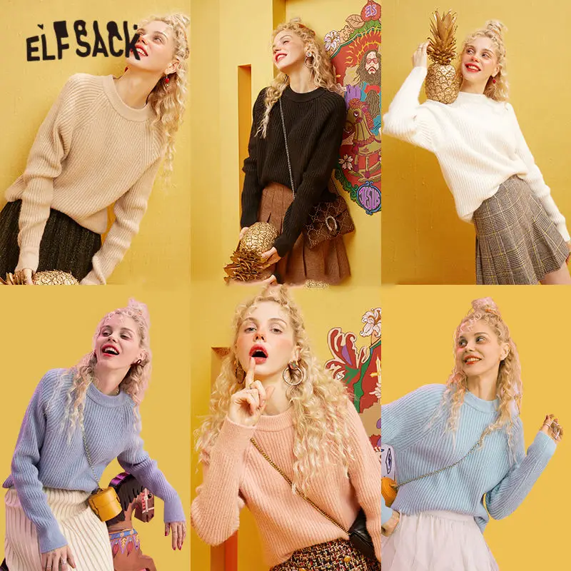 ELFSACK многоцветный однотонный минималистичный вязаный Повседневный пуловер, свитер для женщин 2020, зимний чистый корейский мягкий Дамский Базовый Топ с длинным рукавом
