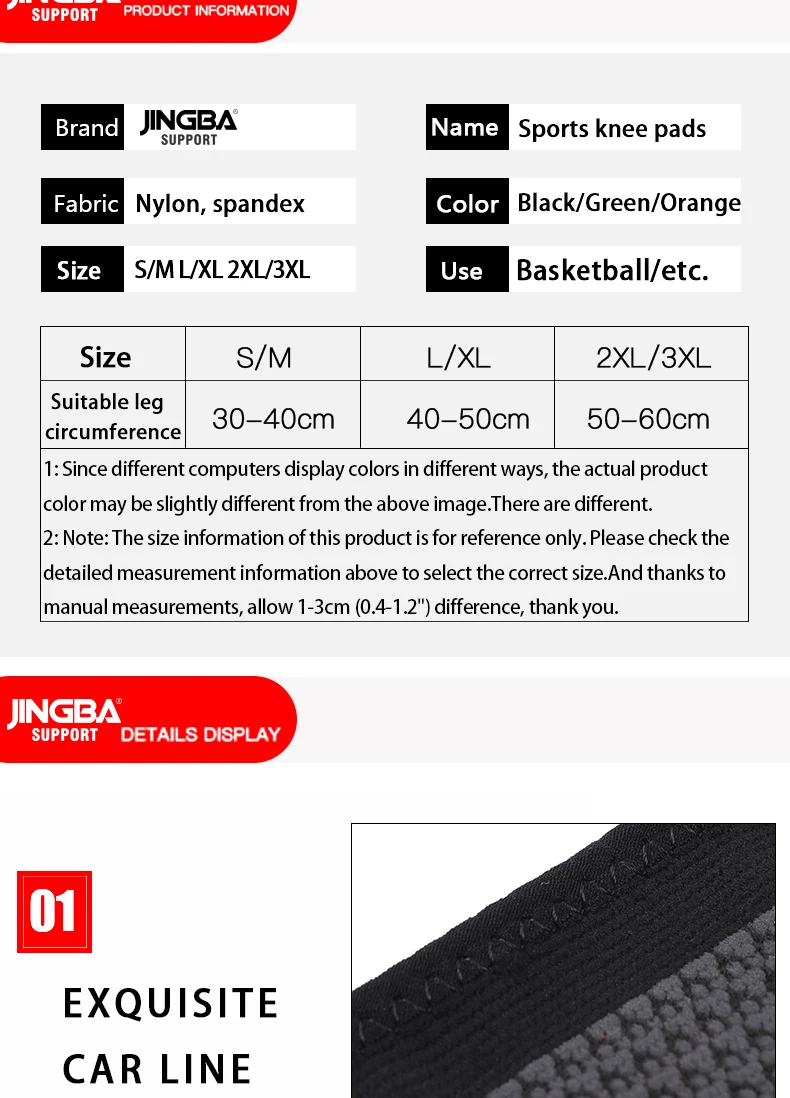 Фиксатор JINGBA 1 пара, эластичный нейлоновый наколенник, защита для баскетбола, волейбола, фиксатор для колена joelheira