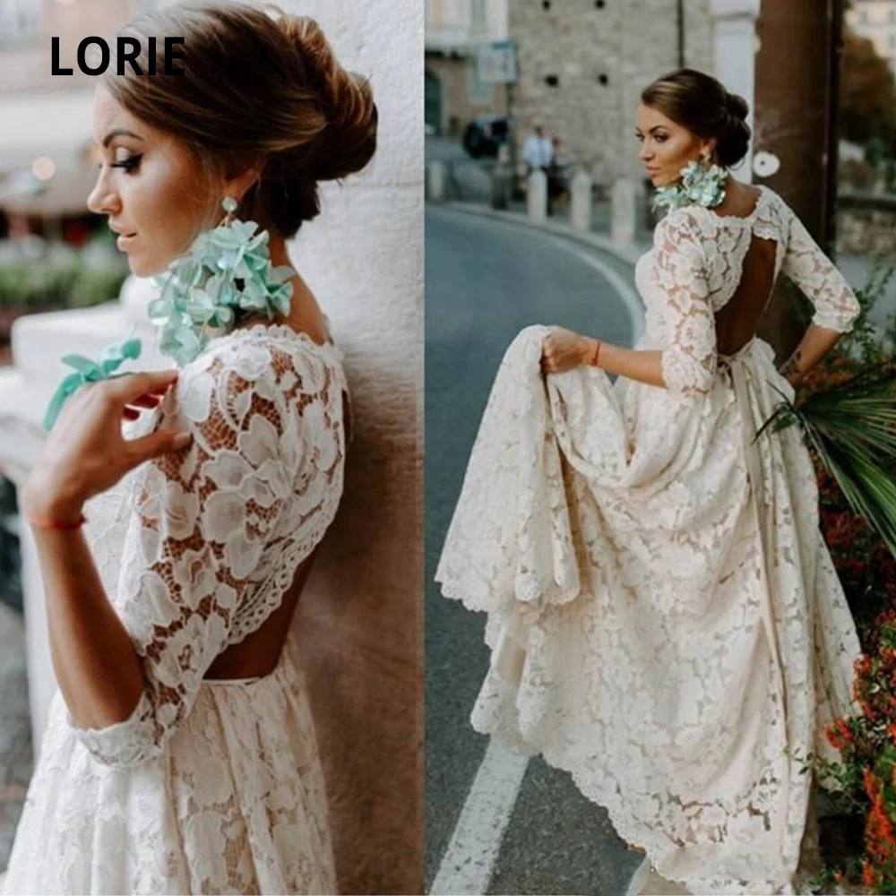 LORIE элегантные полные кружевные фотообои 2019 Свадебные платья с рукавом до локтя пляжные свадебные платья с открытой спиной винтажные странные Фотообои