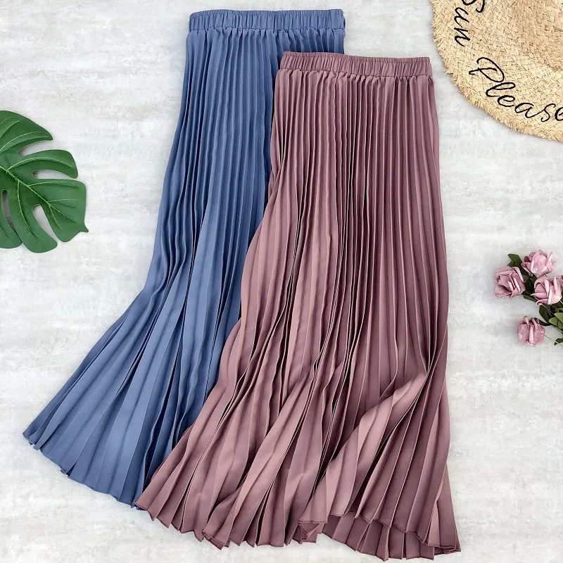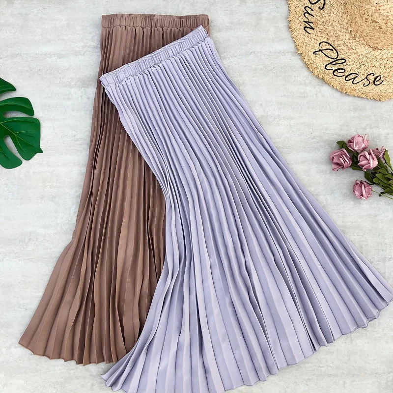 Женская шифоновая плиссированная юбка, Повседневная Длинная юбка с высокой талией, женские миди юбки, весна-лето