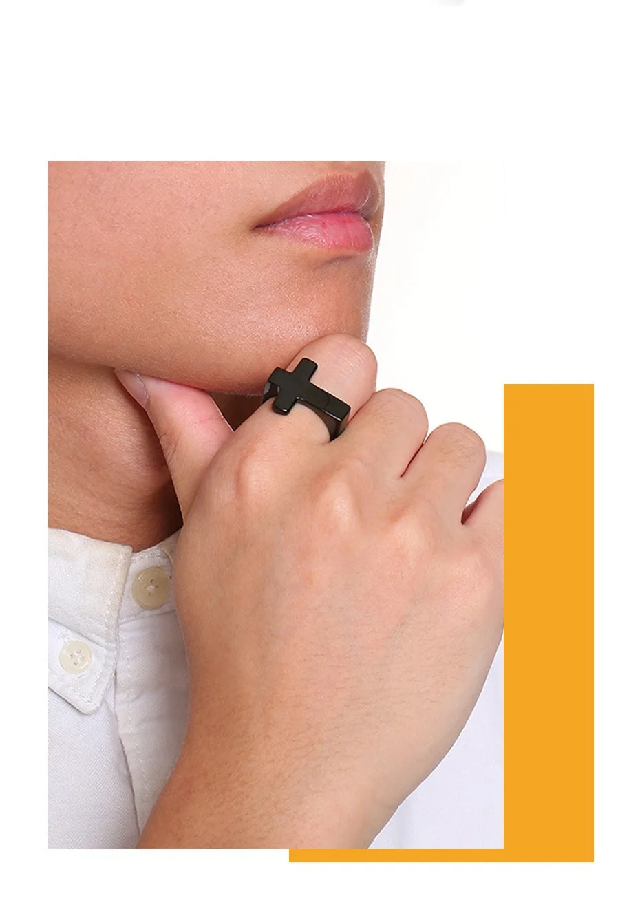 Простые крестообразные кольца для мужчин и мальчиков, золотое, серебряное, черное кольцо, религиозное мужское ювелирное изделие, подарок для христианского католицизма