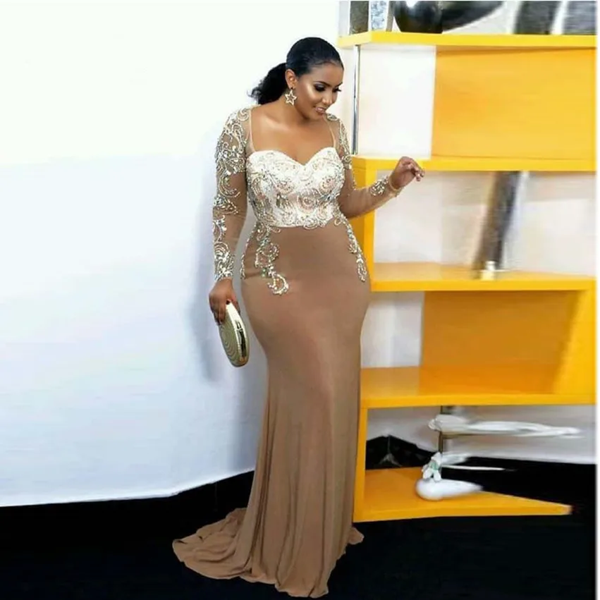 Женское вечернее платье с юбкой годе, элегантное платье с длинными рукавами, украшенное кристаллами в африканском стиле, лето 2021