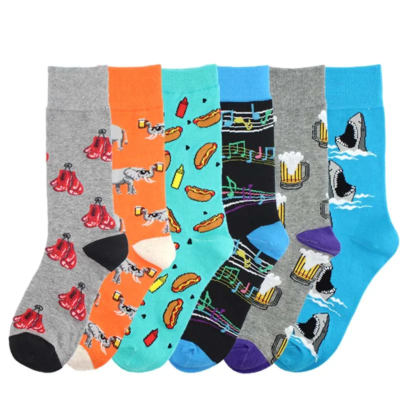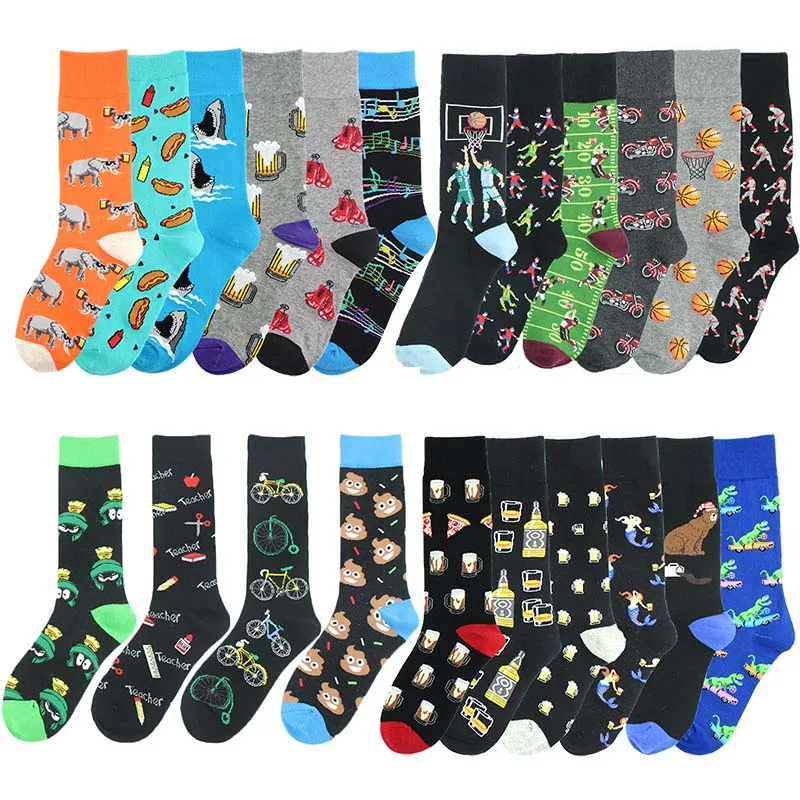 Красочные счастливые мужские носки хлопок милый узор свадьба улична...