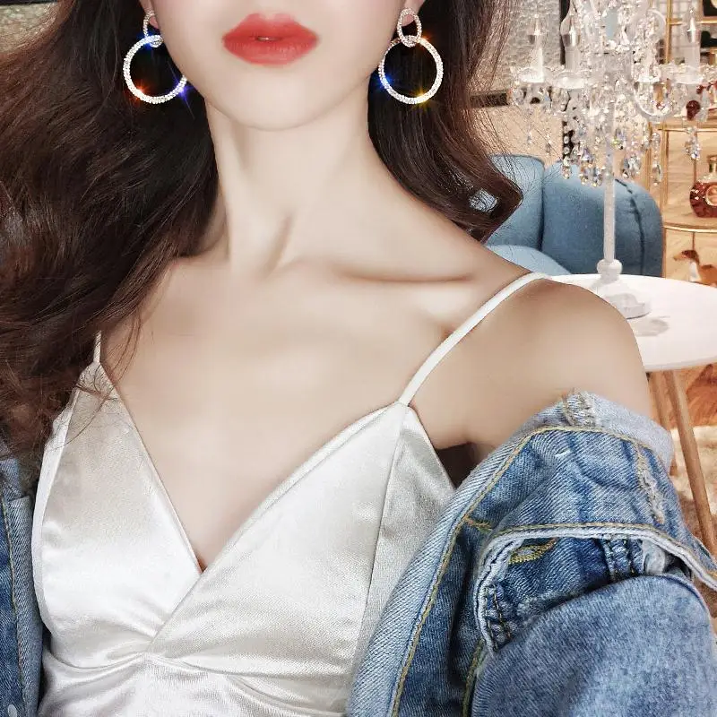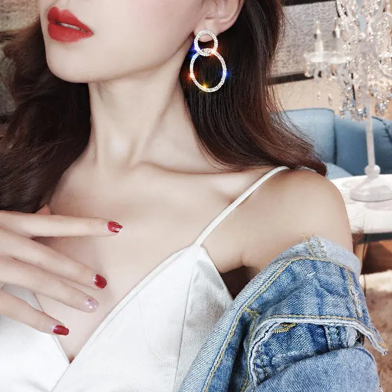 Большие и маленькие длинные висячие серьги-кольца корейские циркони...