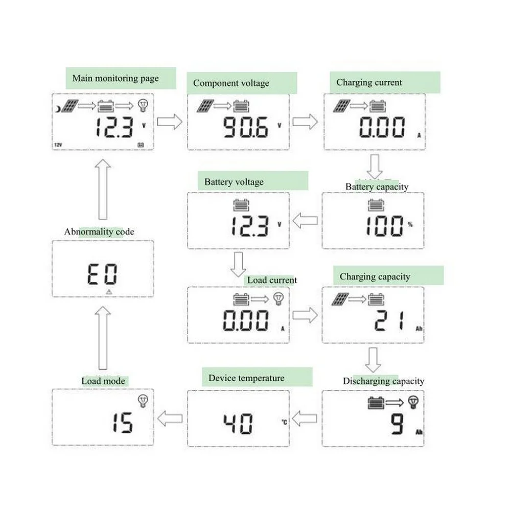 Этот продукт может следить за генерирующей мощностью солнечной панели и отслеживать самые высокие значения напряжения и тока (VI) в режиме реального времени, позволяя системе заряжать аккумулятор максимальной мощностью. Он предназначен для использования в автономных солнечных фотоэлектрических системах для координации работы солнечной панели, батареи и нагрузки, функционирует как основной блок управления в автономных фотоэлектрических системах.