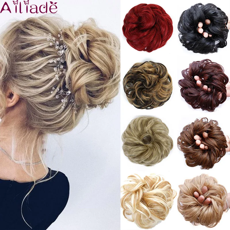 Lupu синтетические кудрявые гибкие волосы в пучок пончик резинка дл...