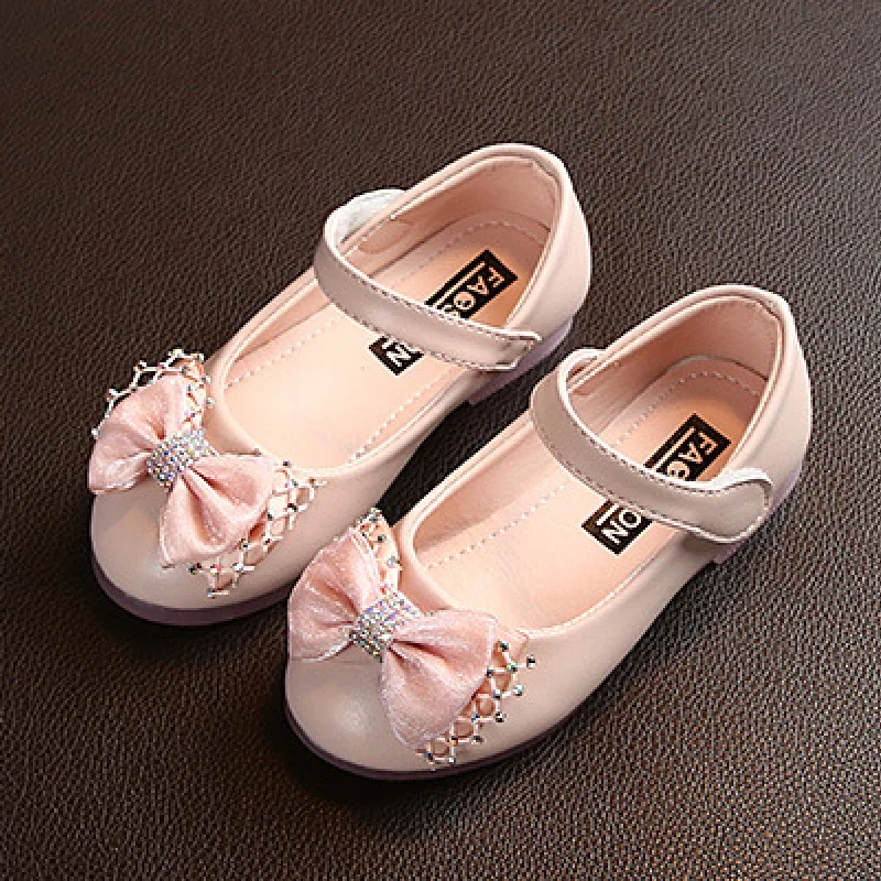 Платье-балерина для маленьких девочек, Туфли Мэри Джейн на плоской подошве, лоферы для девочек из искусственной кожи, цветные стразы с бантом, детские туфли