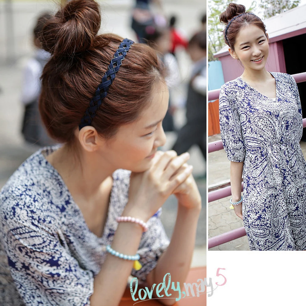 Обруч для волос Женский, вязаный, широкий, синий