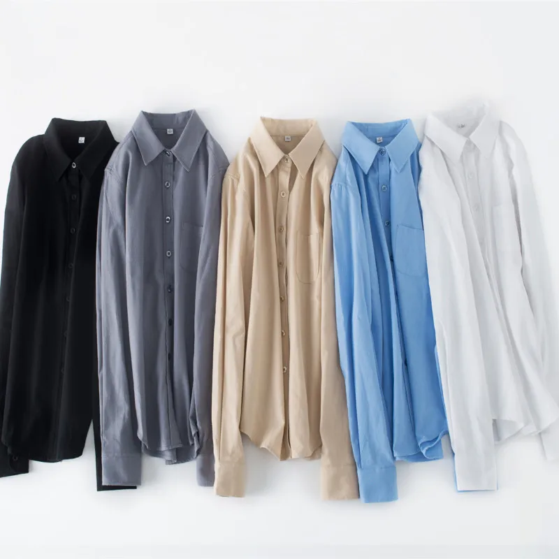 2020 однотонные женские хлопковые блузки, женские топы, повседневные женские блузки с длинным рукавом, офисные женские блузки XZ728