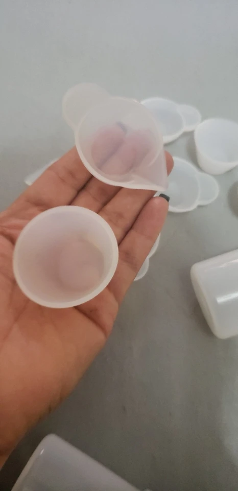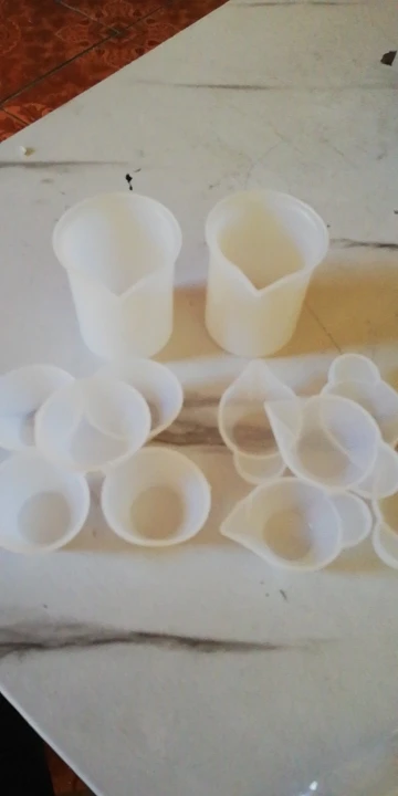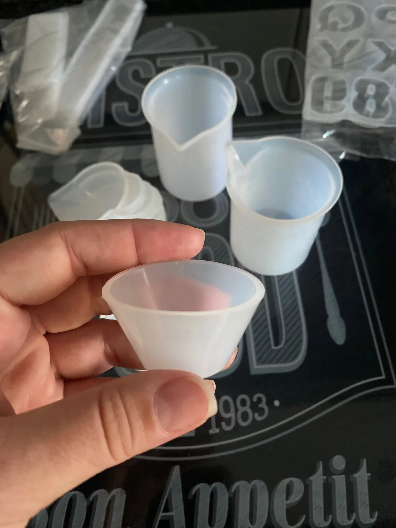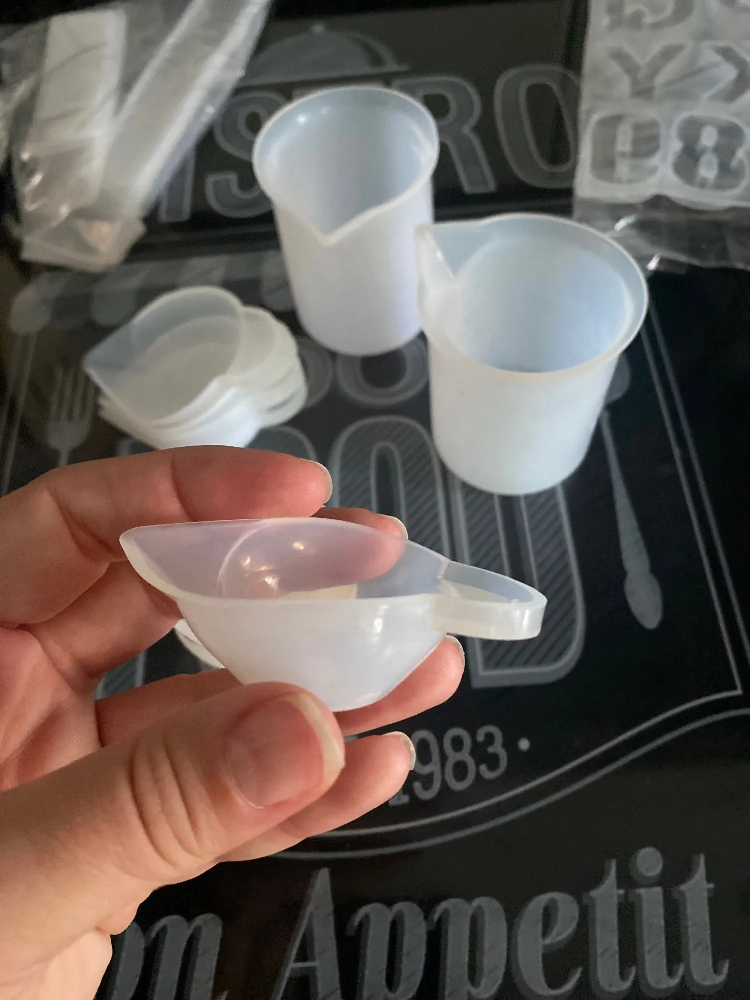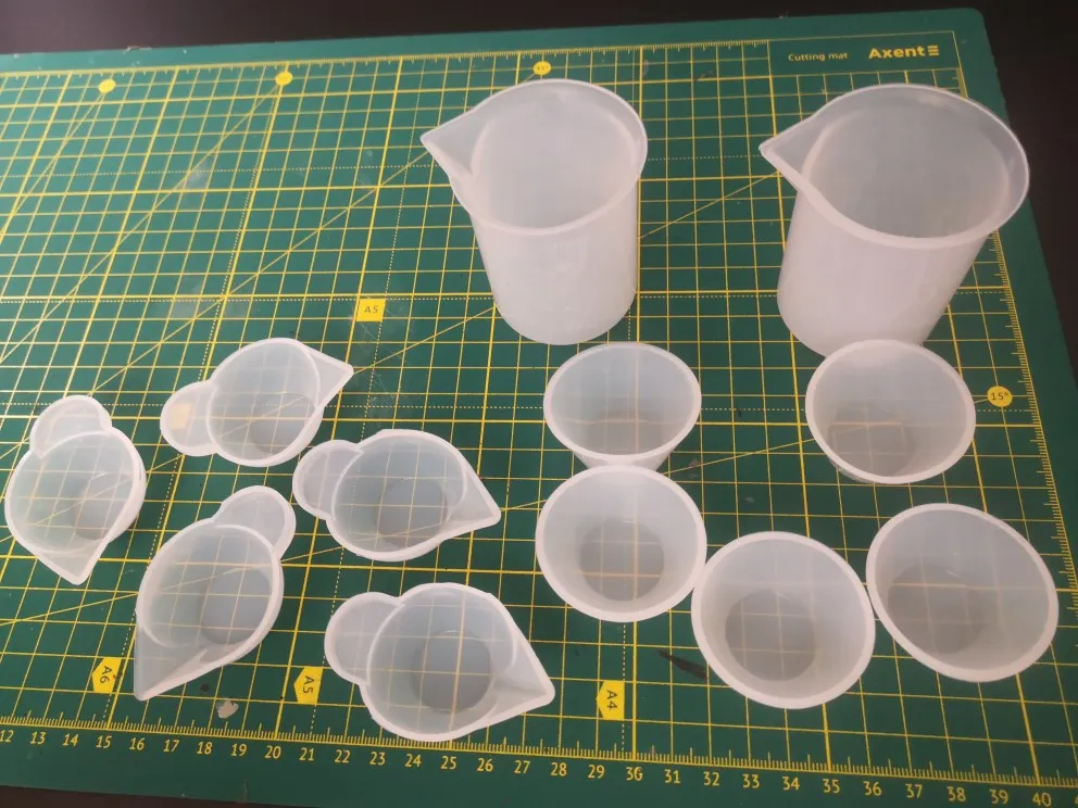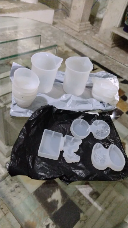Прийшли всі силіконові посудинки. Якість нормальна, хоча мають різкий хімічній запах нових виробів та були чимось заляпані, але саме дефектів немає. Для епоксидної смоли саме те.