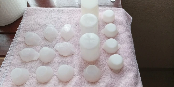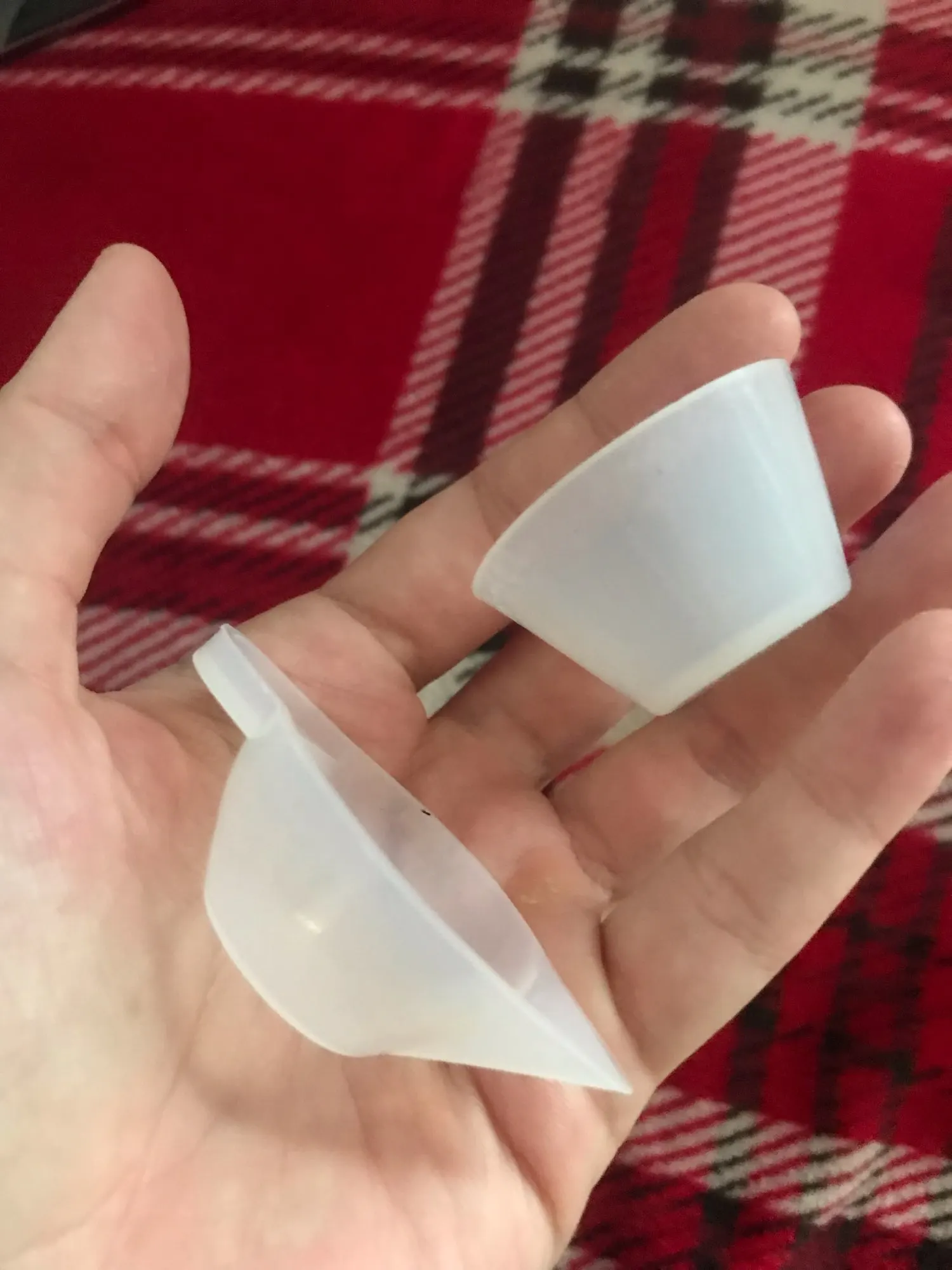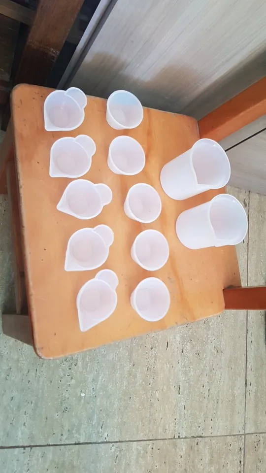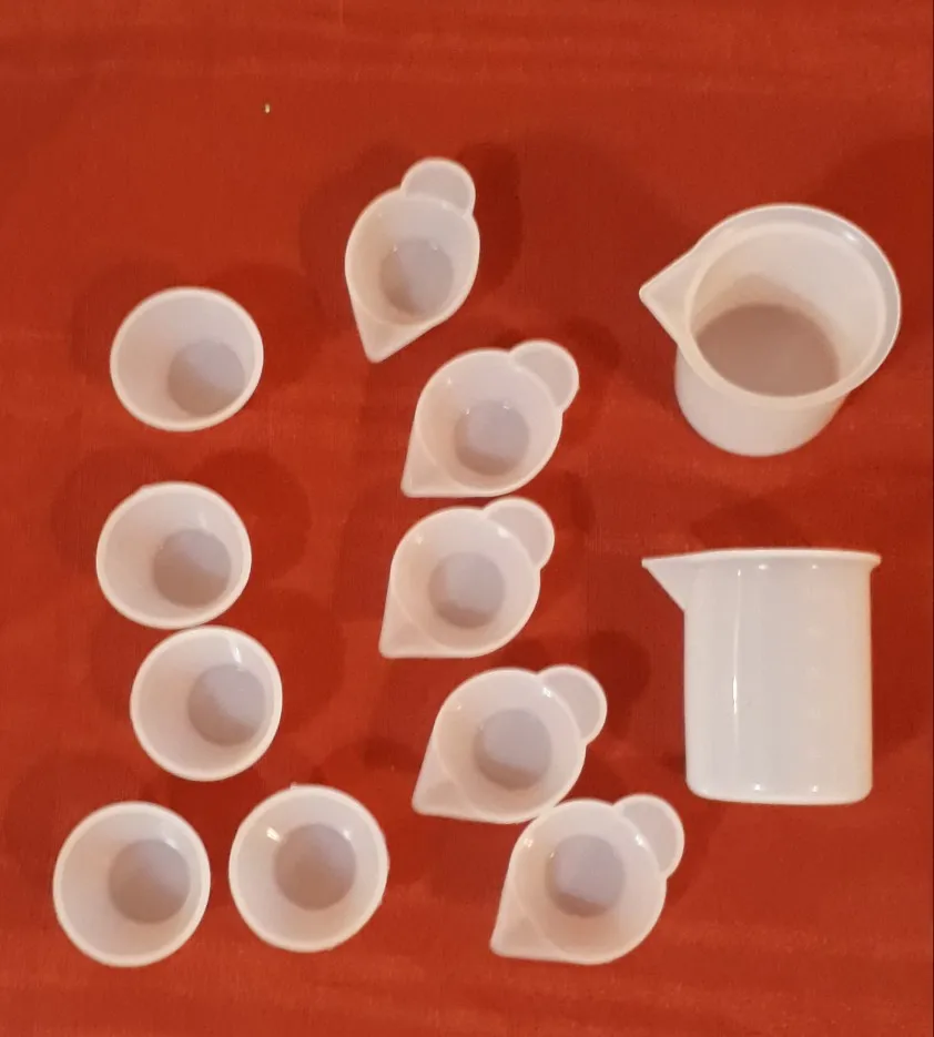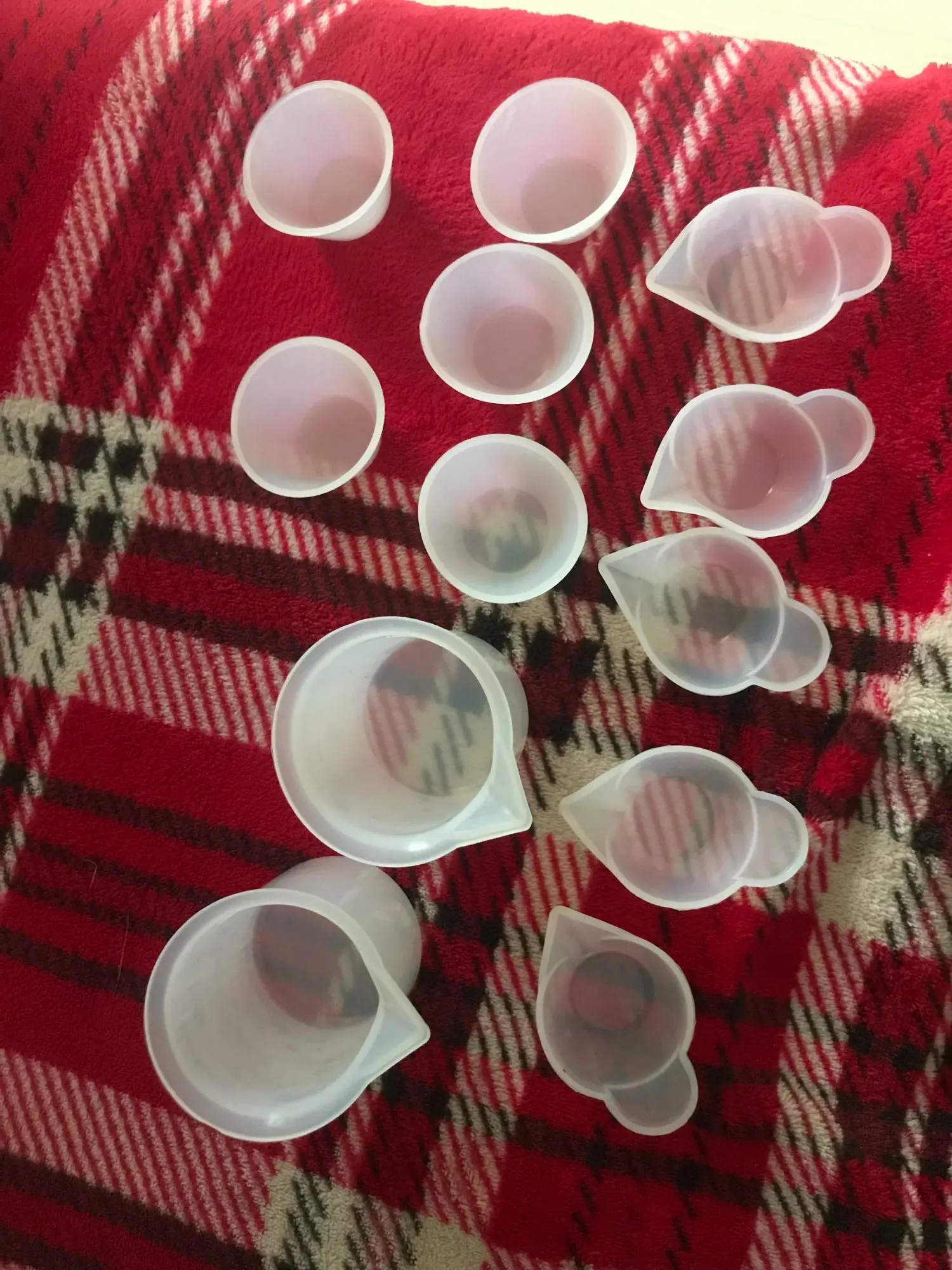 Прийшли всі силіконові посудинки. Якість нормальна, хоча мають різкий хімічній запах нових виробів та були чимось заляпані, але саме дефектів немає. Для епоксидної смоли саме те.