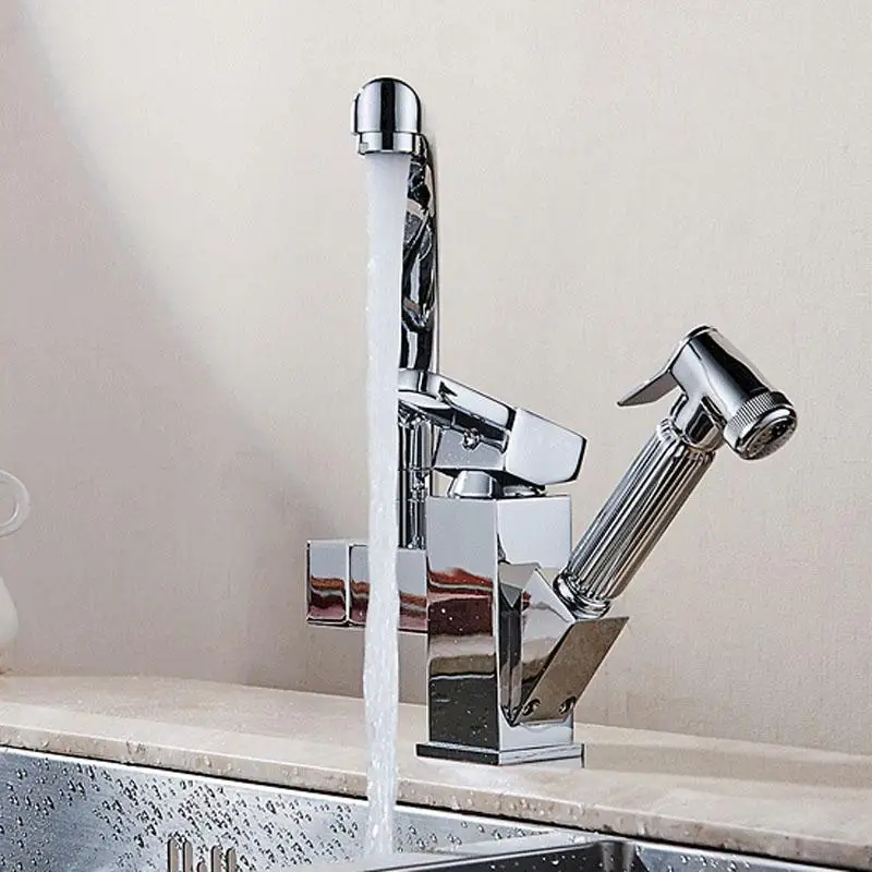 Смесители для кухни выдвижной распылитель для душа крепление на палубу смеситель для раковины Смеситель для кухонной раковины с двойным изливом для кухонных смесителей