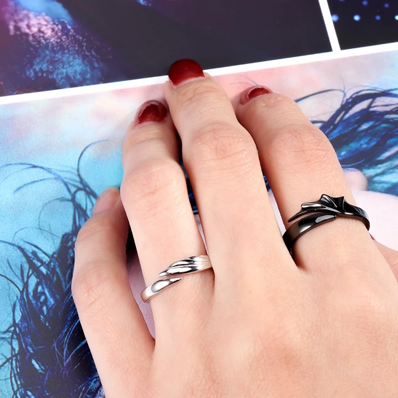 Серебряные кольца в виде ангела и дьявола для влюбленных