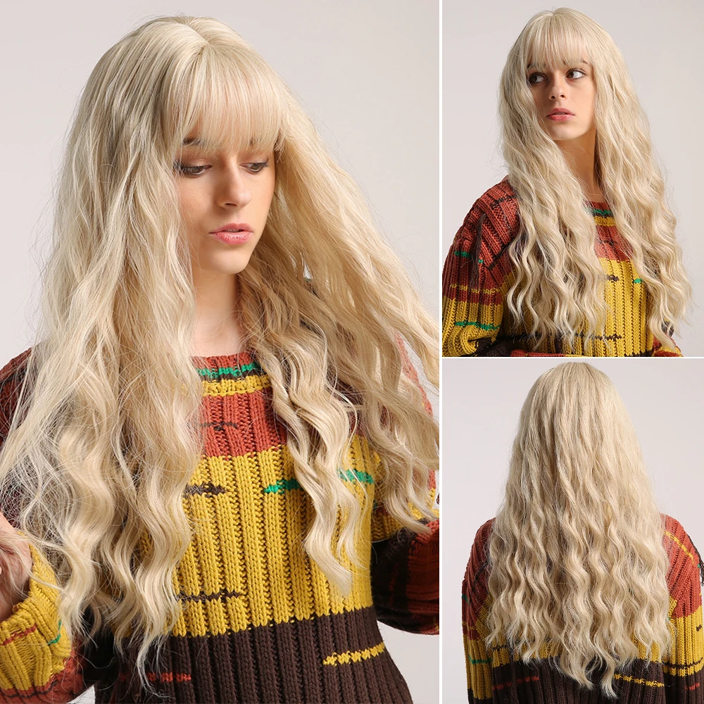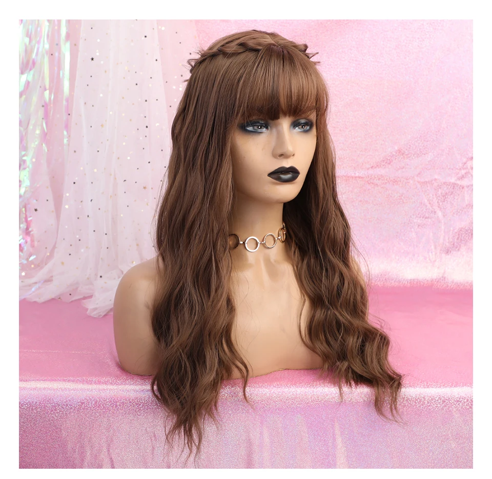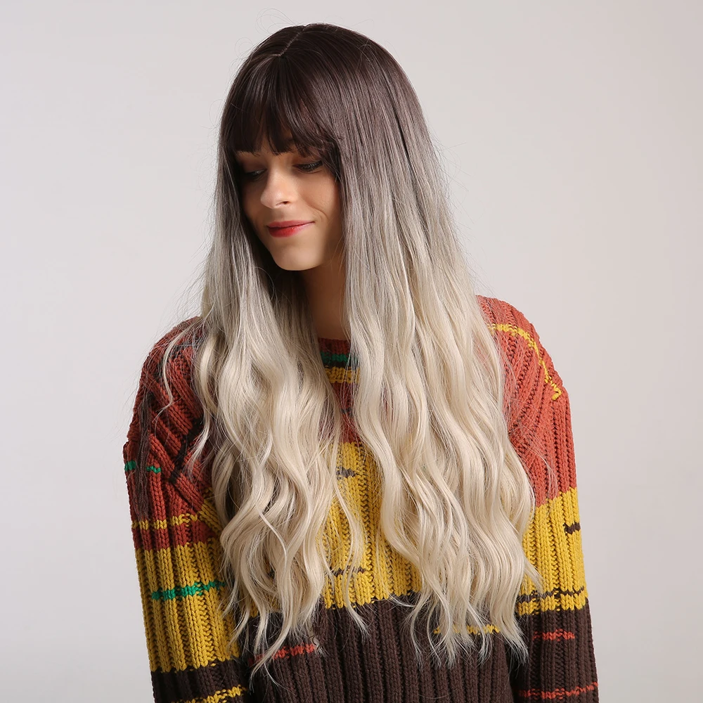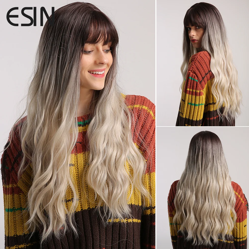 ESIN коричневый парик с Омбре для светлых Длинных Волнистых Волос с челкой натуральные парики для женщин термостойкие синтетические волосы