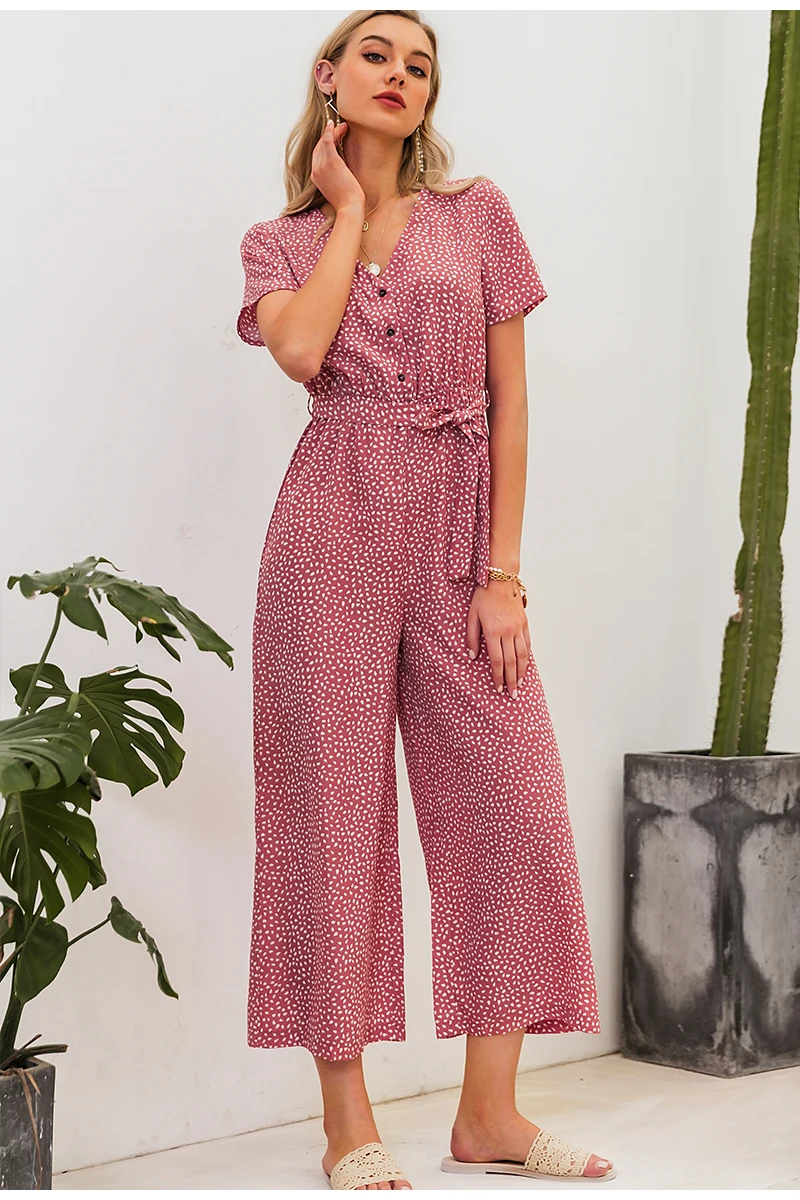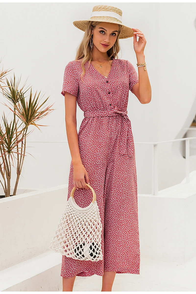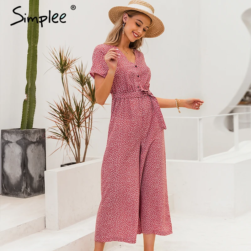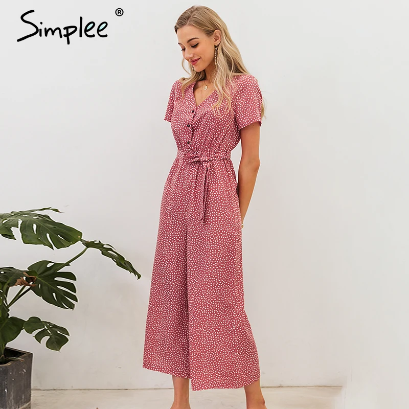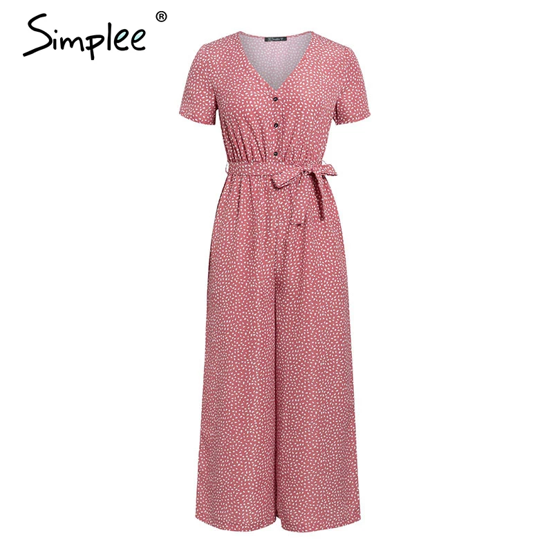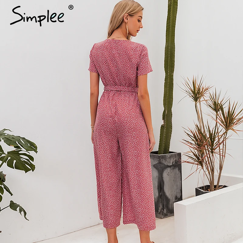 Simplee в богемном стиле, в горошек, женские комбинезоны с v-образным вырезом с коротким рукавом и поясом, женский спортивный костюм romper кнопки летние каникулы пляжные комбинезоны для девочек